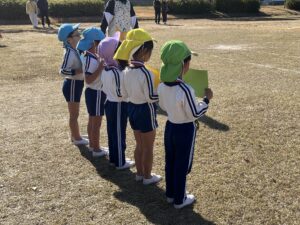 その一環としてブルーウィングのコーチによるサッカー教室を行ないルールを守る道徳性やチームワークを育んでいます。今年も大分県ラグビーフットボール協会の協力で講師の方々が幼稚園を訪問してラグビー体験会を開催しました。