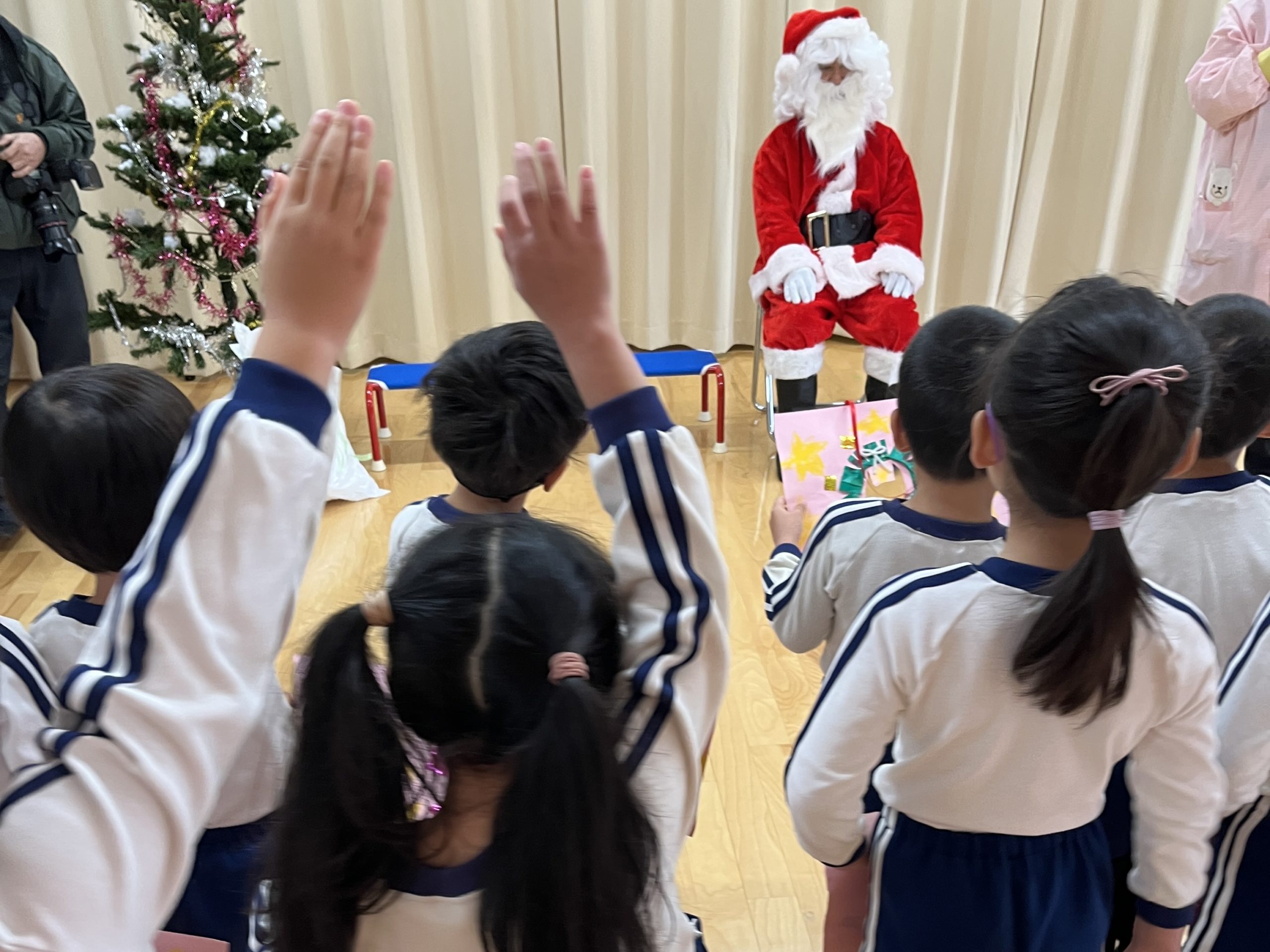 🎄クリスマス会🎄 / ブログ / By miyakawauchi 12月18日(月) 今日はクリスマス会でした🎄 ホールに行くとサンタさん🎅がいて みんなビックリ‼️‼️😳 「どこから来ましたか?」 「何歳ですか?」 と気になることを質問すると サンタさんがサンタ語で答えてくれました🎅🏻 一緒に写真撮影もできて楽しいクリスマス会 になったようです🧑🏻👩🏻
