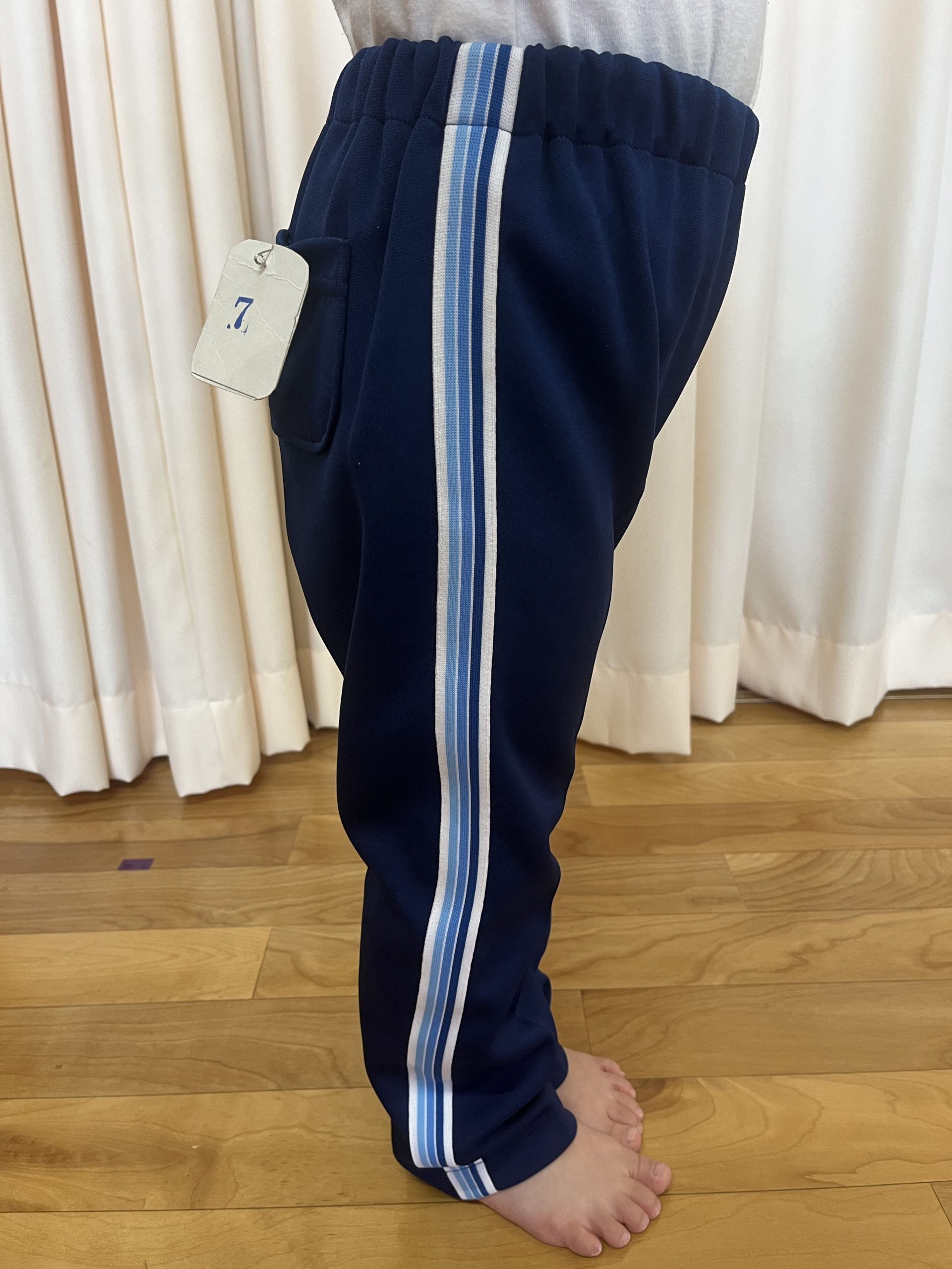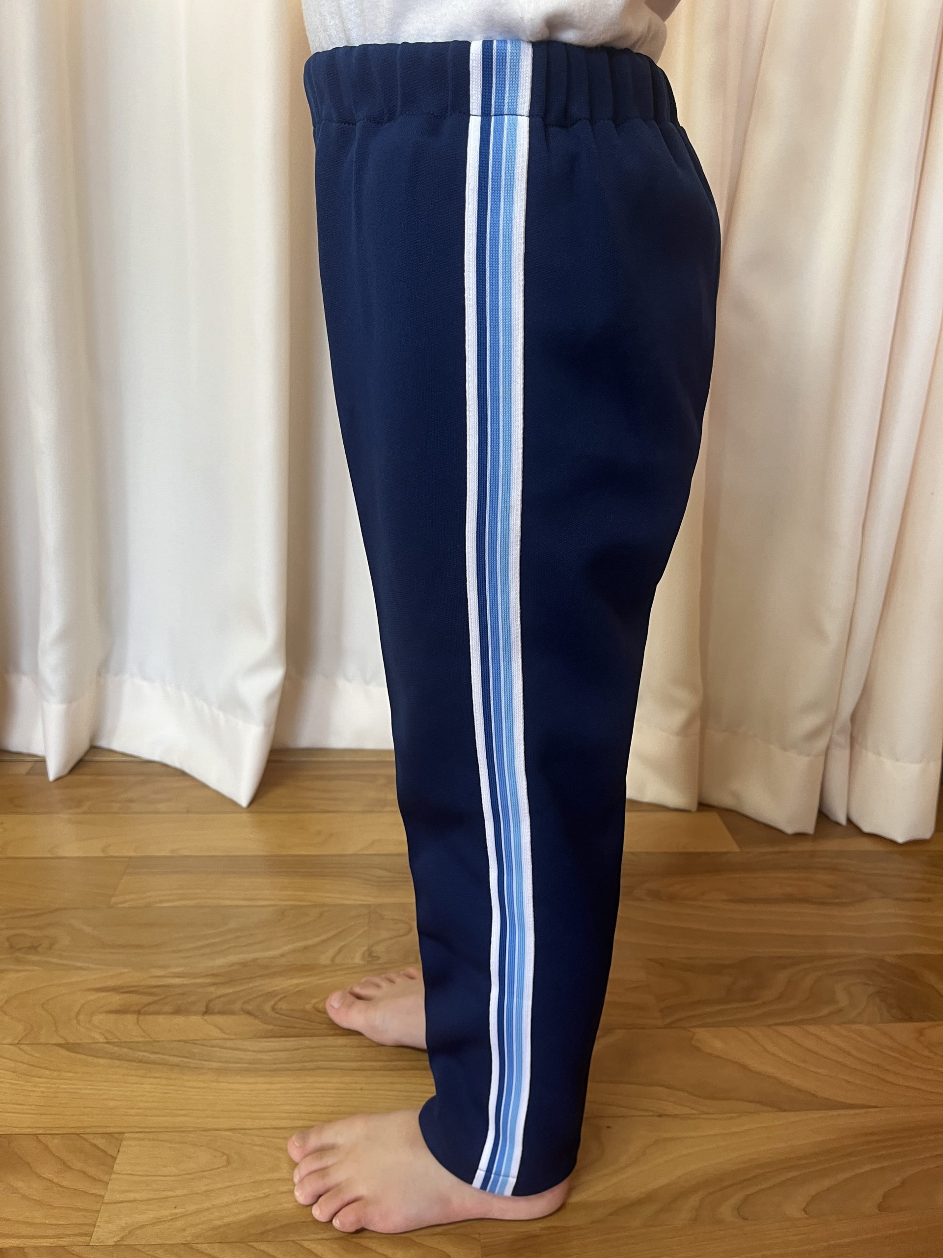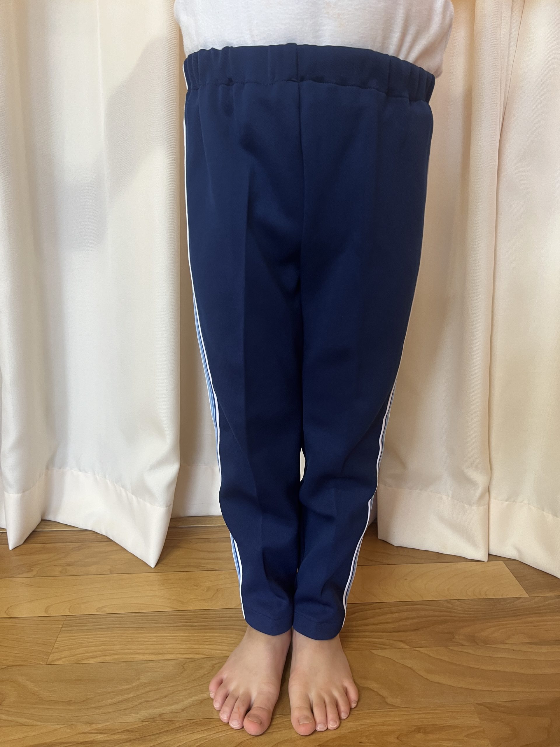 体操服長ズボンについて / お知らせ / By miyakawauchi 体操服長ズボンの素材、サイズ表記は ショートパンツと同じです。 J5(110)身長105〜115 J7(120)身長115〜125 J9(130)身長125〜135 J11(140)身長135〜145 (裾上げは中に折り込んで縫って下さい) *J7(120)身長115〜125のサイズを着用 *身長119㎝ *身長103㎝ *身長103㎝(裾を中に折り込んだ状態)