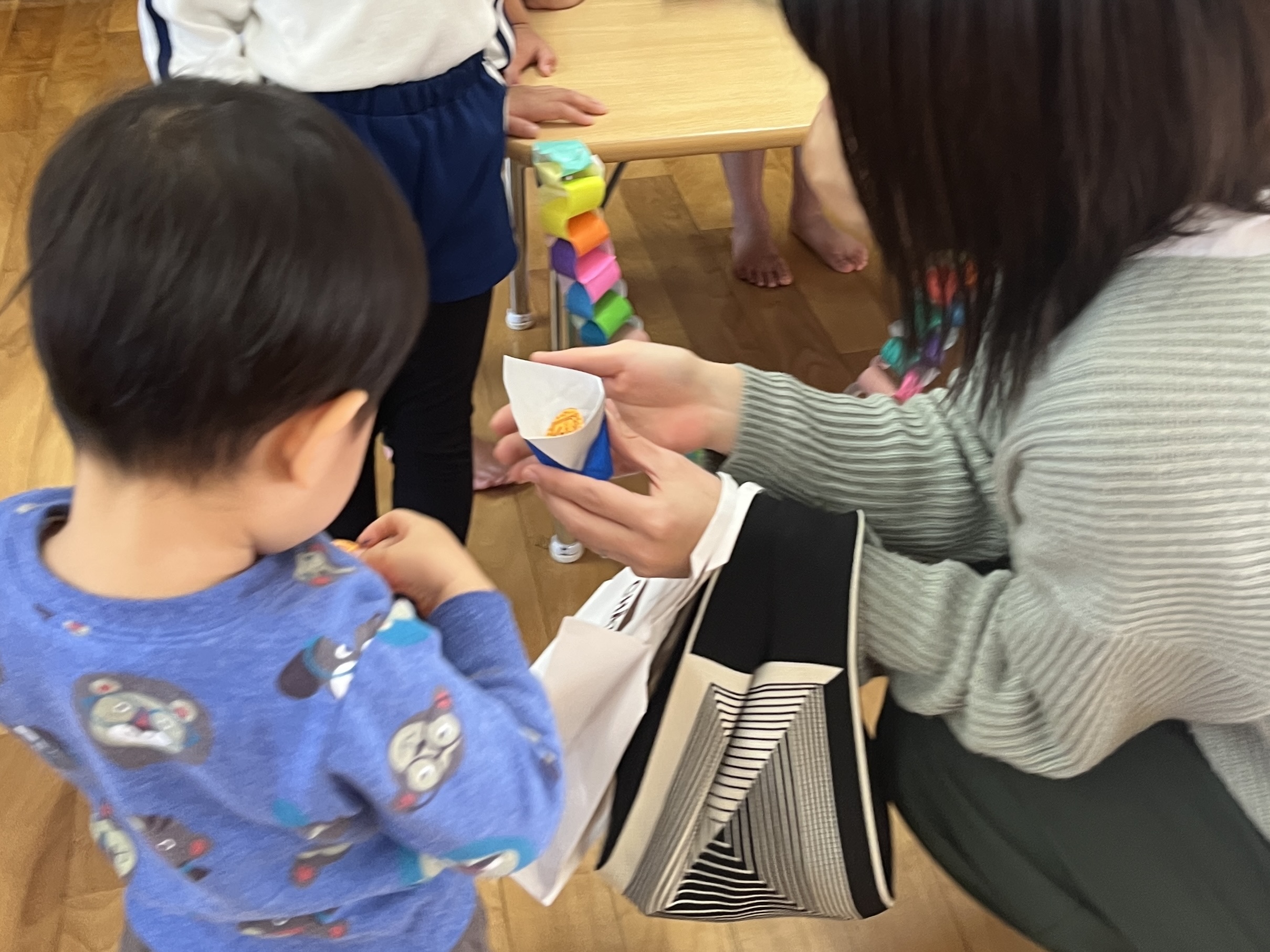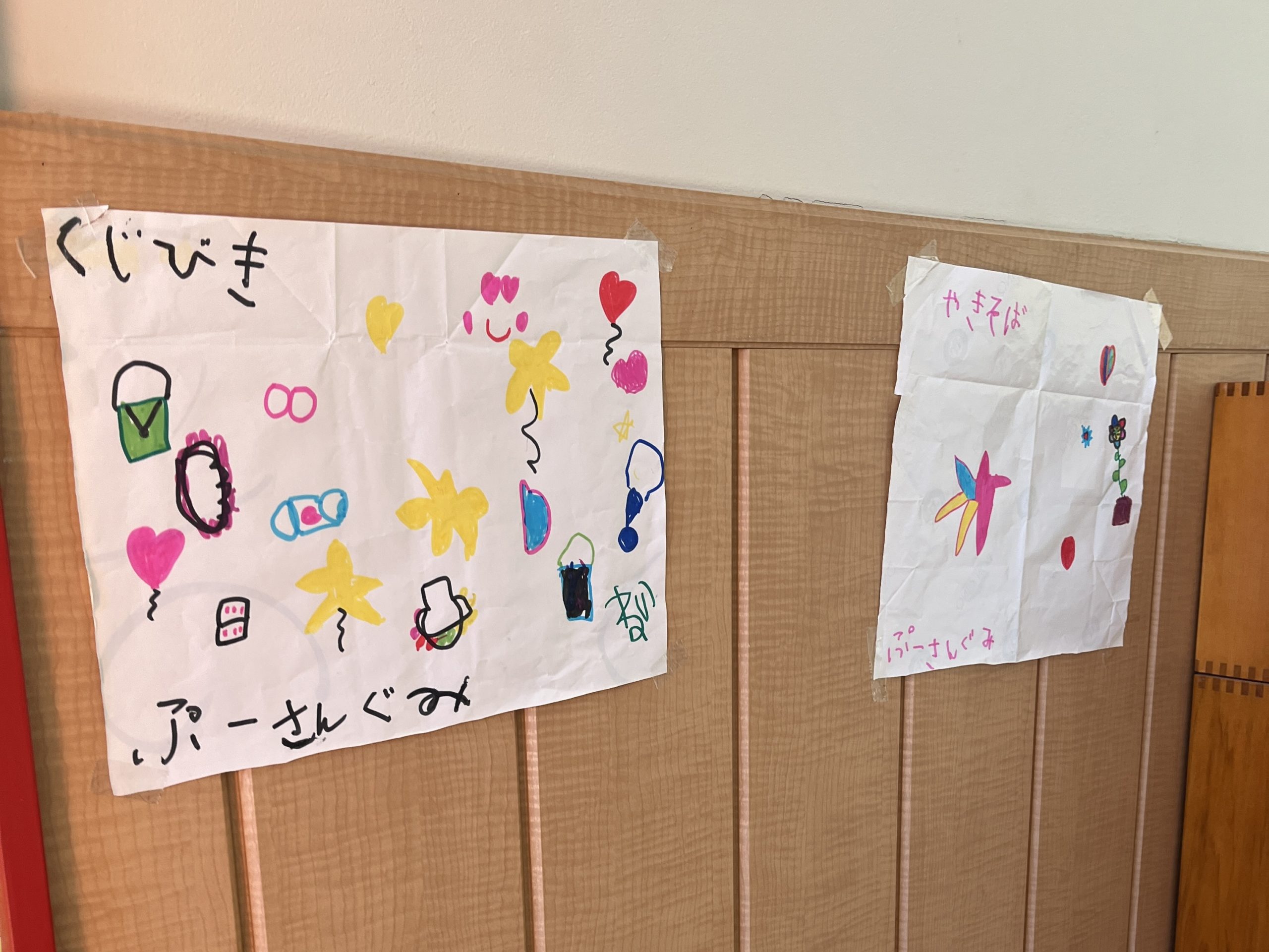 🎯宮河内幼稚園まつり🎳&🐥ひよこ組🐥 / ブログ / By miyakawauchi 2月14日・15日の二日間 宮河内幼稚園まつりを開催しました🎯 輪投げやさん、焼きそばやさん等やりたい お店を決めて自分たちで作り、お祭りを 完成させました🎳 15日にはひよこ組のお友だちも参加して お客さんと店員さんに分かれてお祭りを 楽しみました❗️ お祭り後、お店で買ったわたあめや 焼きそば、ゲームで当たった景品が沢山 入った紙袋を笑顔で見せてくれました😁