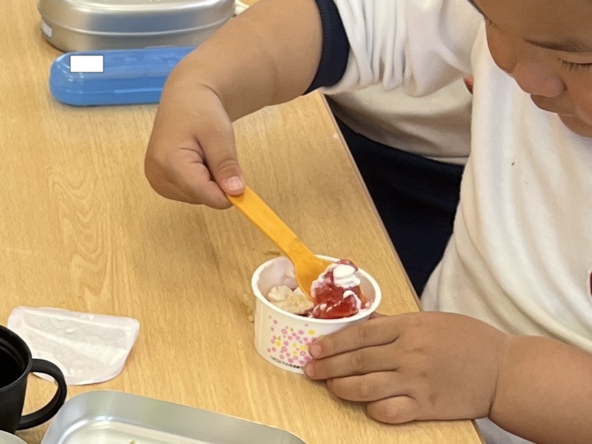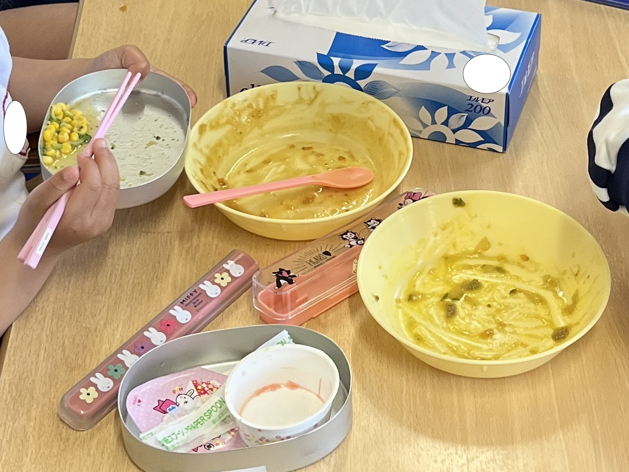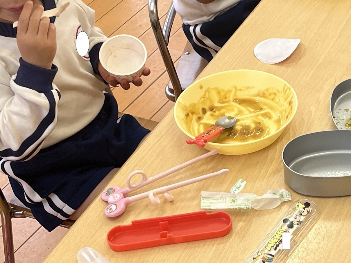 🥢初めての給食🥄 / ブログ / By miyakawauchi 4月18日(木) 今日から給食が始まりました🥢 新入園児さんは幼稚園で食べる 初めての給食です😁 気になる献立は・・・・ 🍛キーマカレー🍛 🥗ブロッコリーサラダ🥗 🍮おめでとうデザート🍮 みんな大好きなカレーでした🤩 ブロッコリーサラダも残さず食べて おかわりをする子がたくさんいました🥄