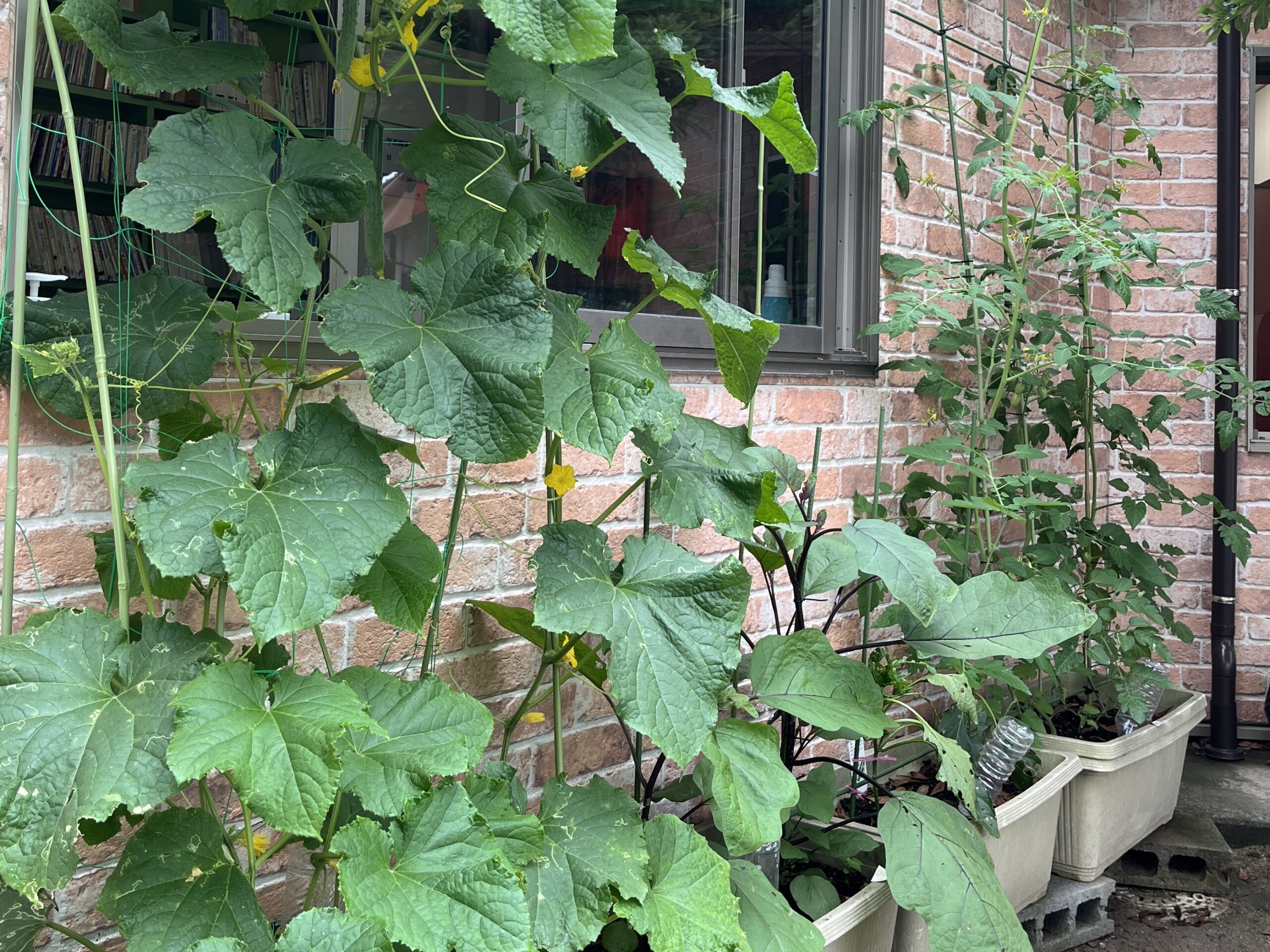 🍅宮河内幼稚園の菜園🫑 / ブログ / By miyakawauchi 6月25日(火) 宮河内幼稚園では、 🍅トマト🍅 🥒きゅうり🥒 🫑ピーマン🫑 🍆なす🍆 をみんなで育てています🌱 小さい芽がではじめると・・・ あっという間に葉が生い茂り どんどん成長していきます🌴 実がなり始めると、 「きゅうりができてるよ!」 「緑のトマトがいっぱいあるー!!」 「お水たくさんあげたからトマトできたね♪」 と子どもたちが教えてくれました😁