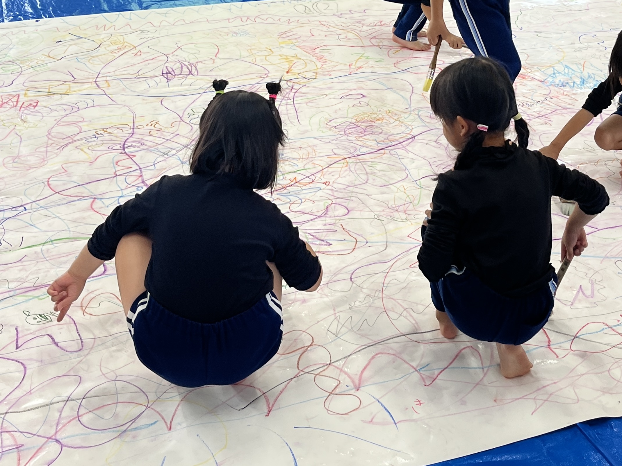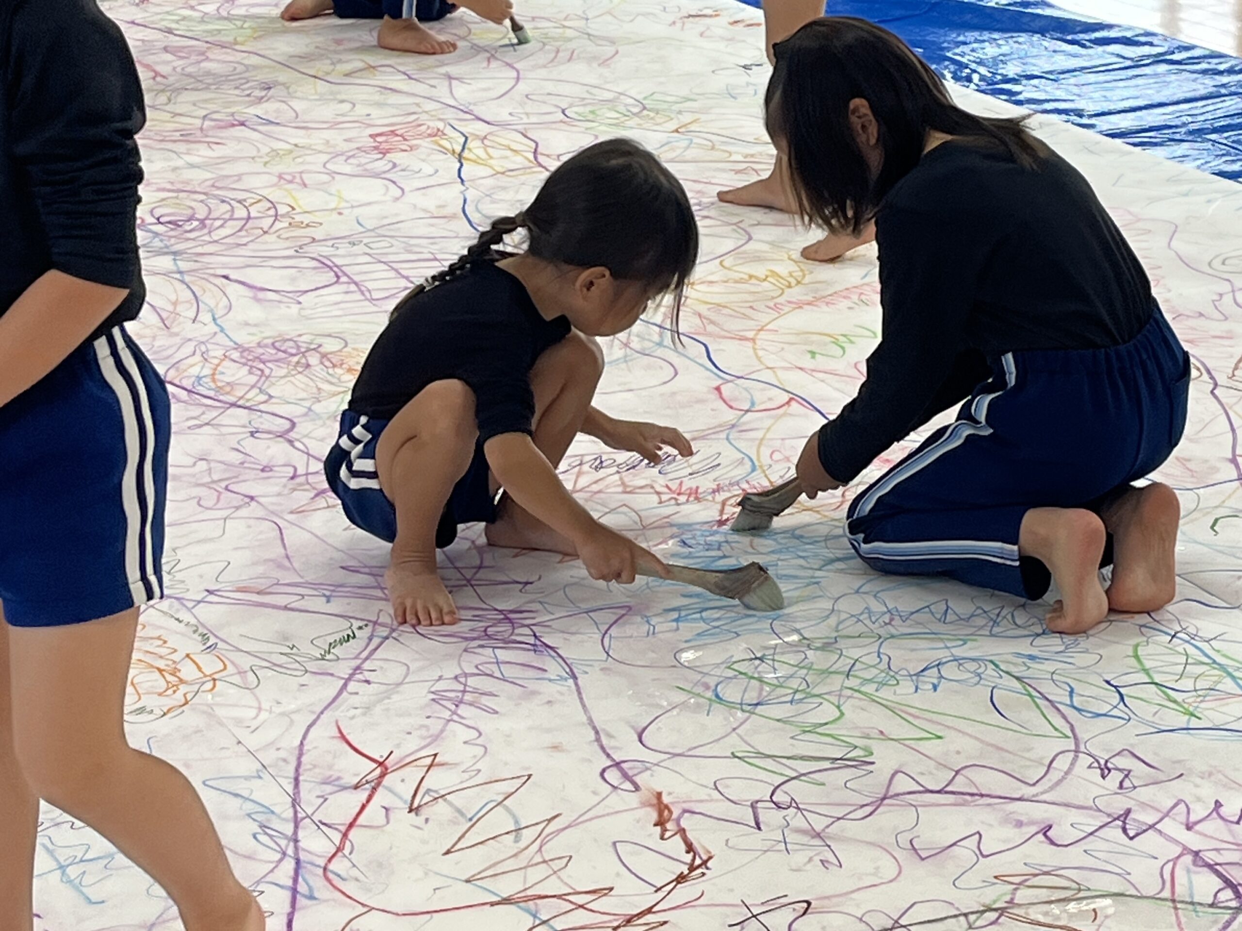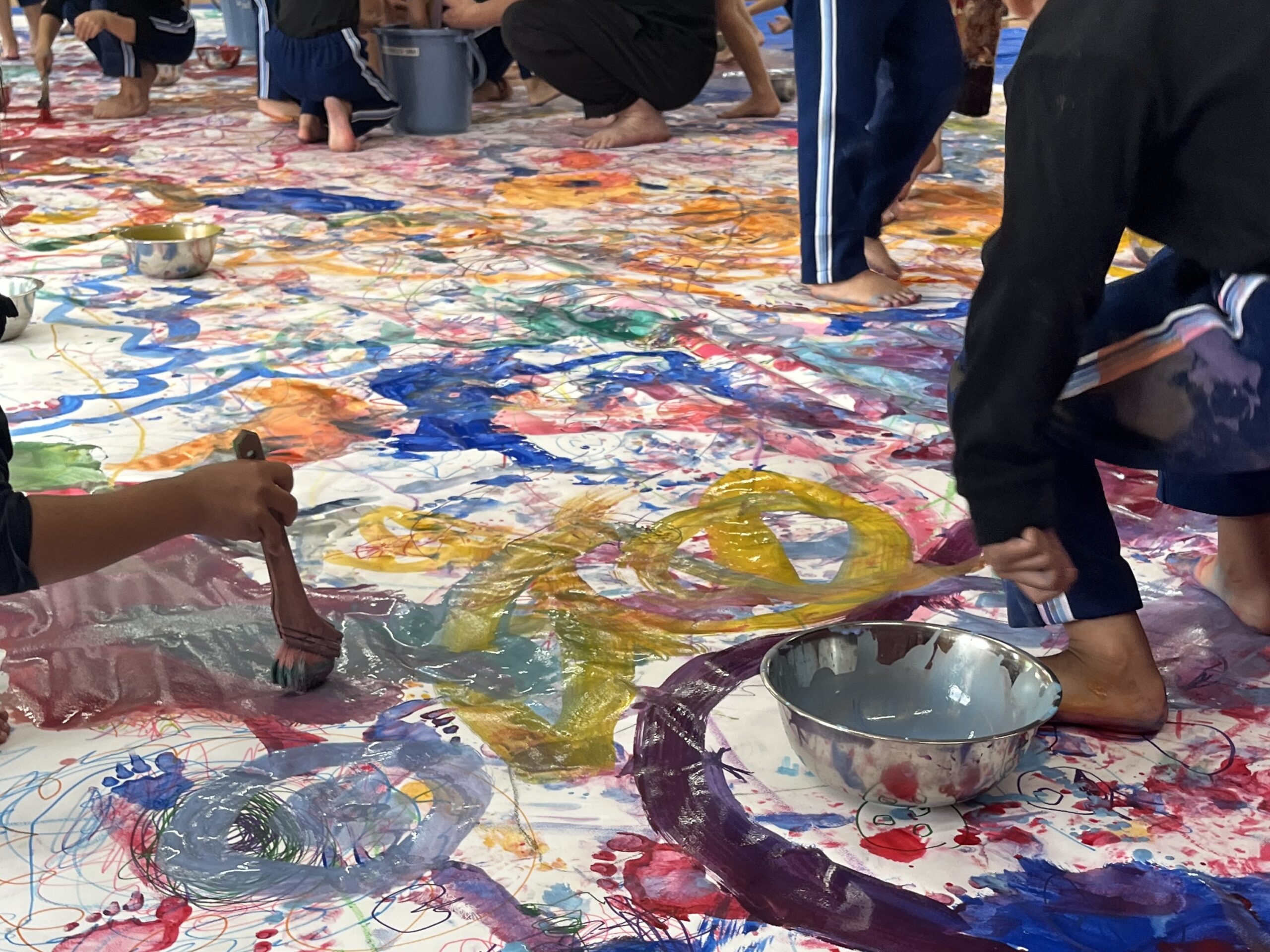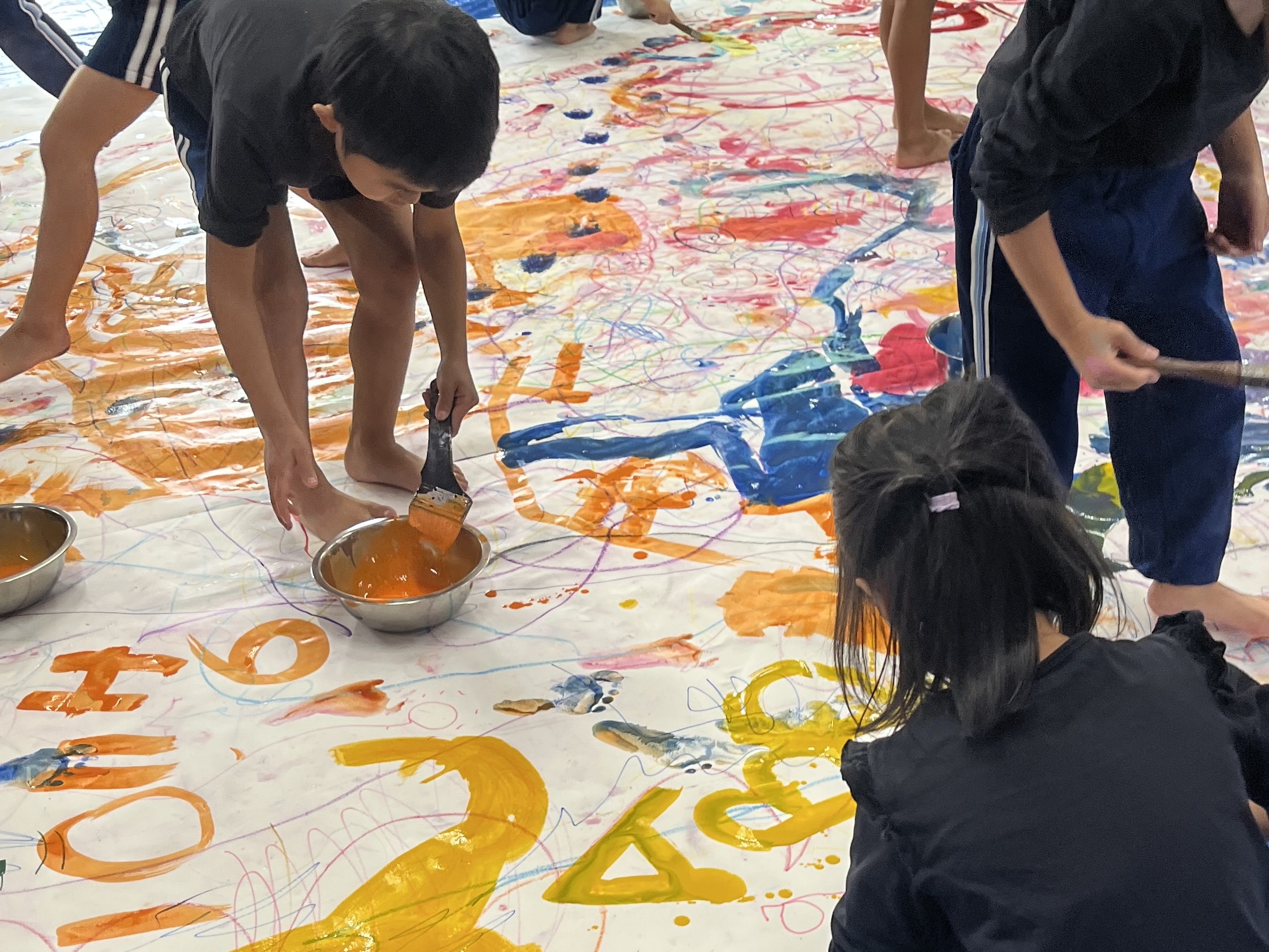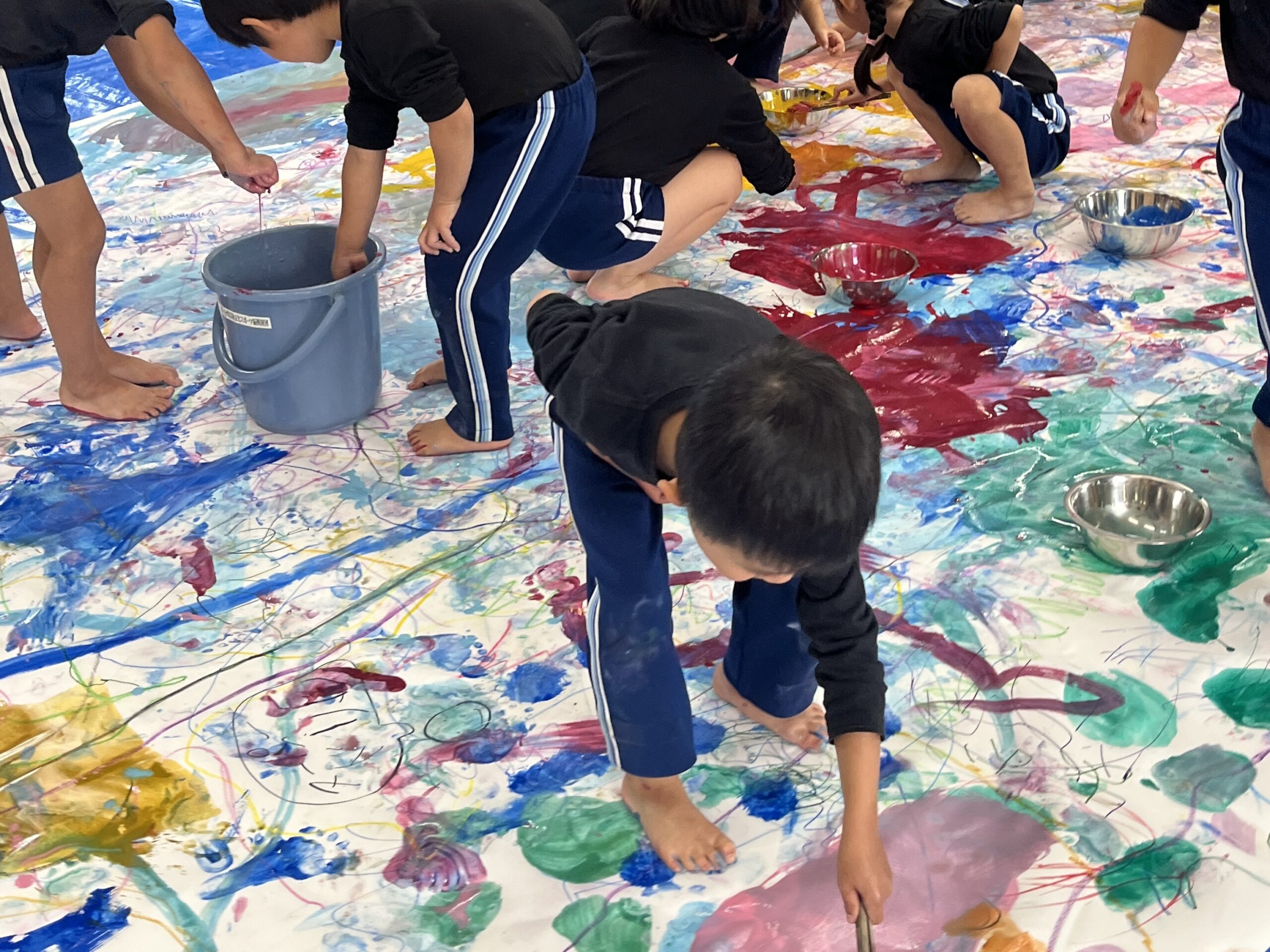 🎨スクールinミュージアム🎨 / ブログ / By miyakawauchi 11月17日(月) スクールinミュージアムで 大分県立美術館(OPAM)の方々に 来園していただきました🎨 くじらホールに広げた 10メートルのキャンバスに😳 楽器の演奏を聴きながら🎶🎷 みんなでクレパスやマーカー、絵の具を使って ひとつの作品を作りました🖼️ 作品が展示される 1月を楽しみにしています🎨 OPAMの えのさん ふっちーさん かなみんさん ともちゃんさん ミュージシャンの りょうこさん、ひろしさん 楽しい体験をありがとうございました😁