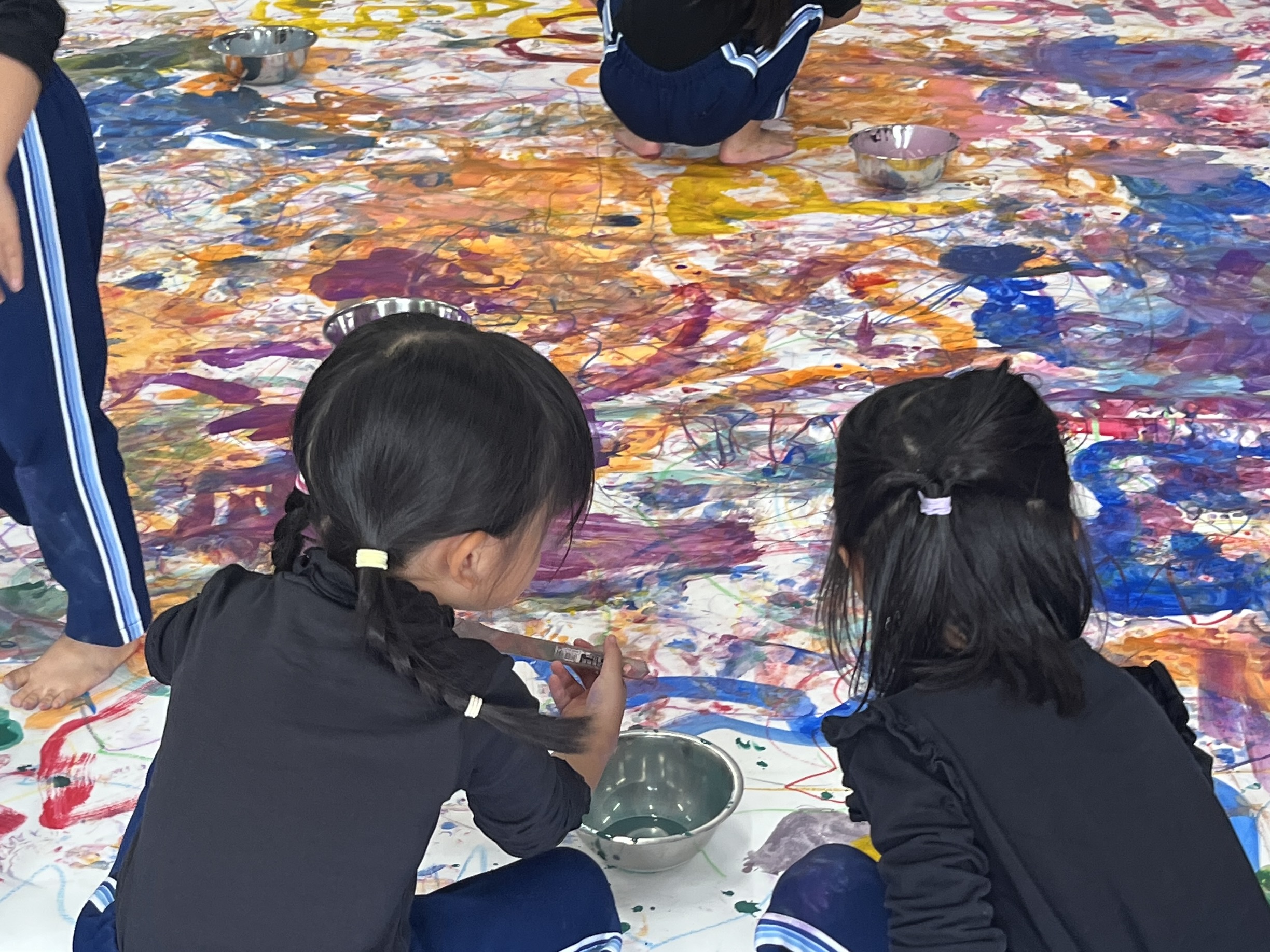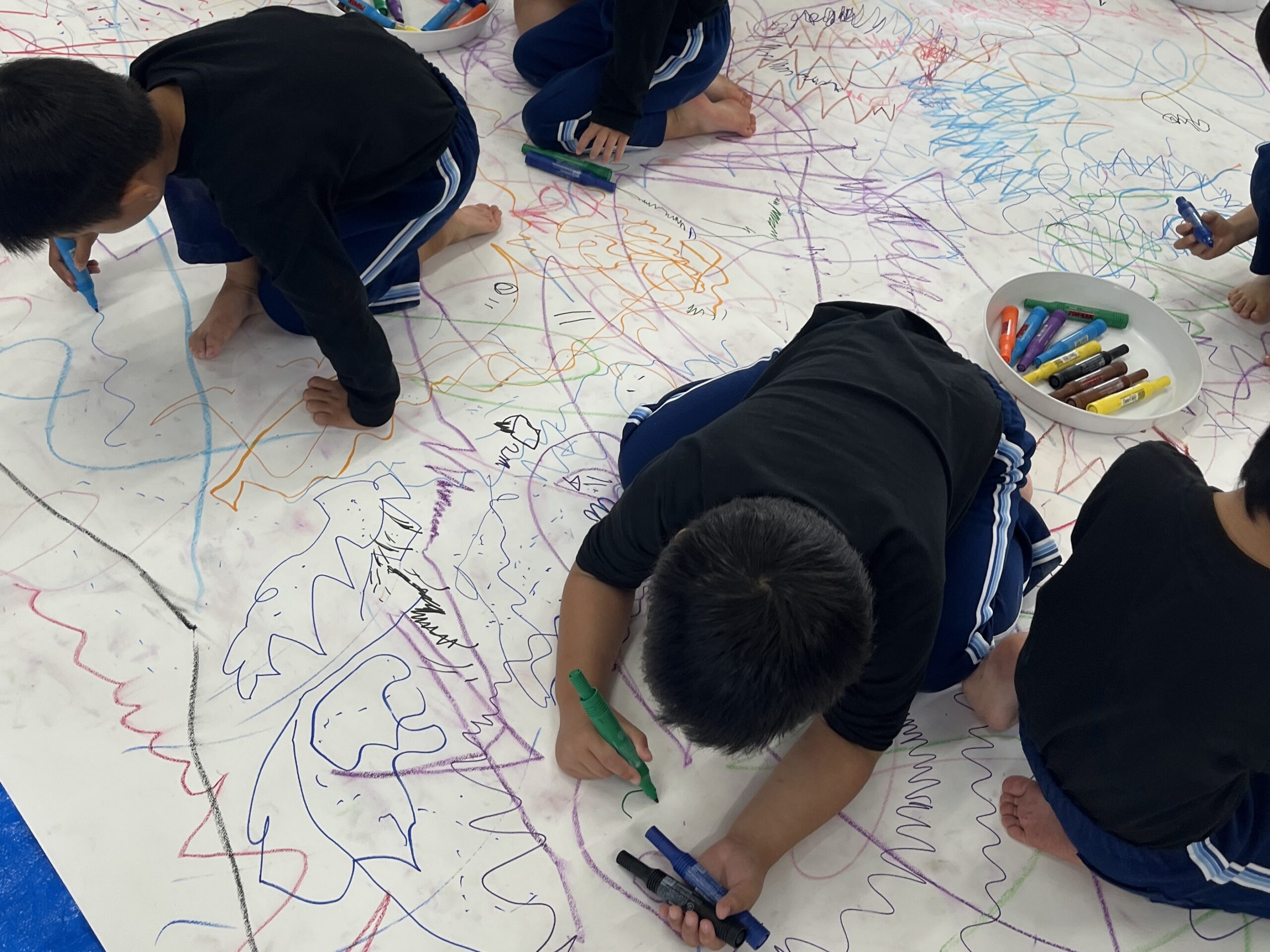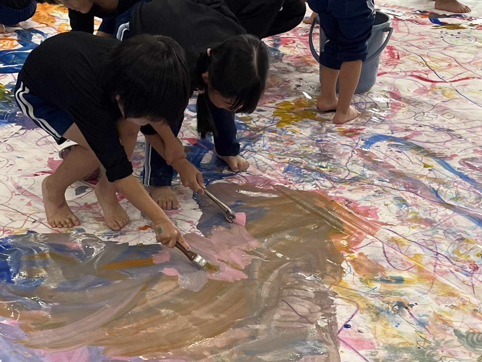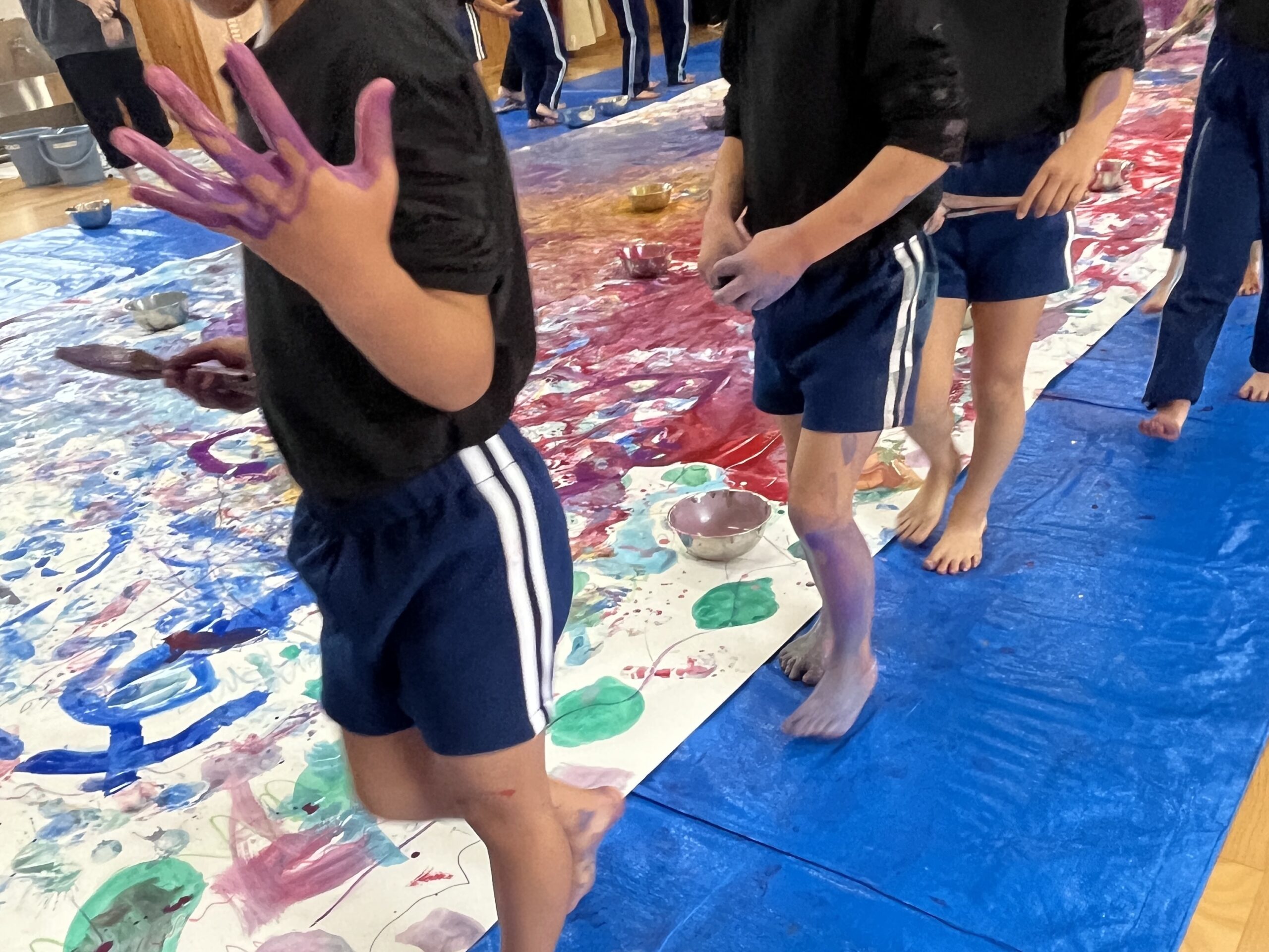 🎨スクールinミュージアム🎨 / ブログ / By miyakawauchi 11月17日(月) スクールinミュージアムで 大分県立美術館(OPAM)の方々に 来園していただきました🎨 くじらホールに広げた 10メートルのキャンバスに😳 楽器の演奏を聴きながら🎶🎷 みんなでクレパスやマーカー、絵の具を使って ひとつの作品を作りました🖼️ 作品が展示される 1月を楽しみにしています🎨 OPAMの えのさん ふっちーさん かなみんさん ともちゃんさん ミュージシャンの りょうこさん、ひろしさん 楽しい体験をありがとうございました😁