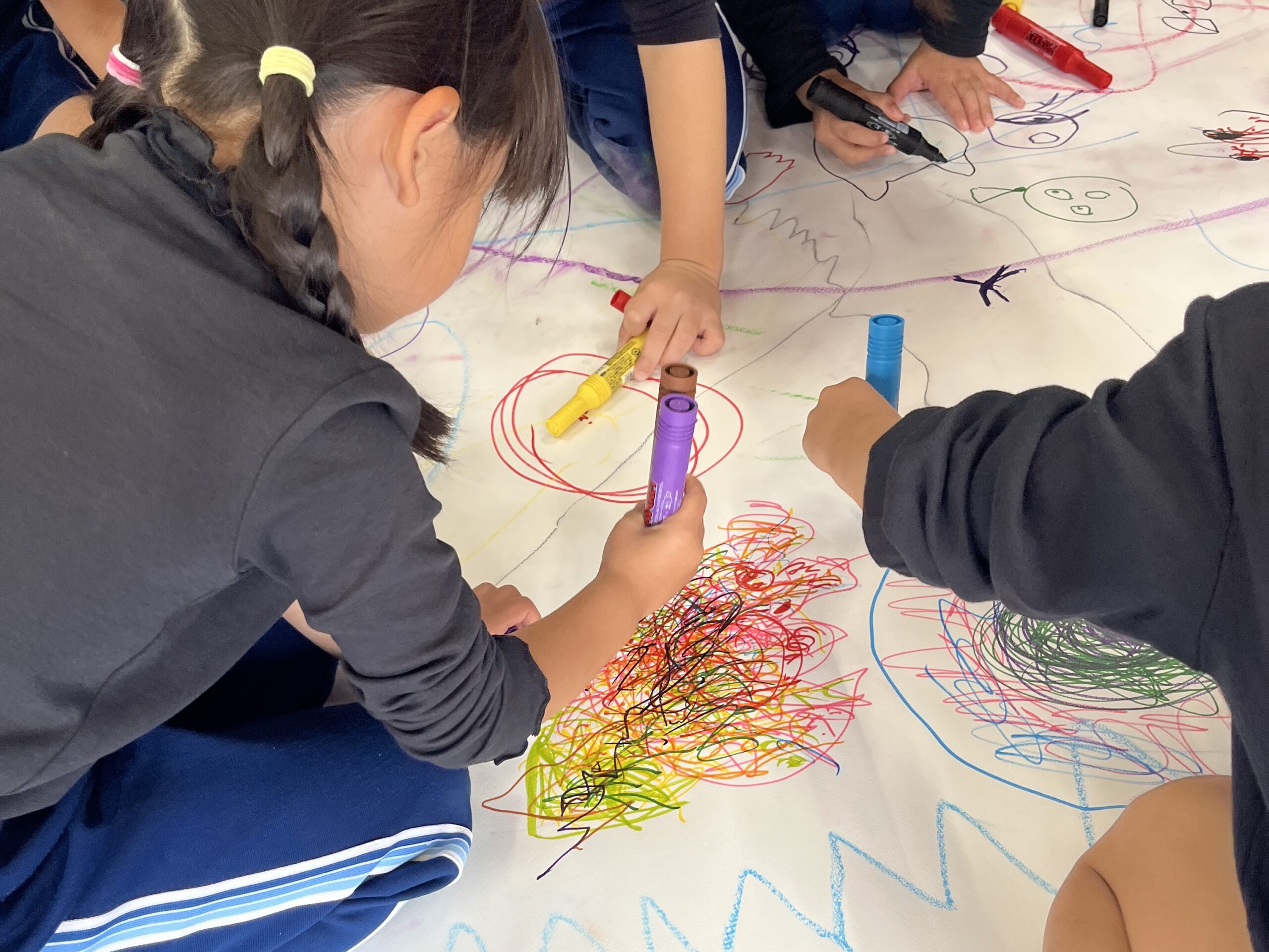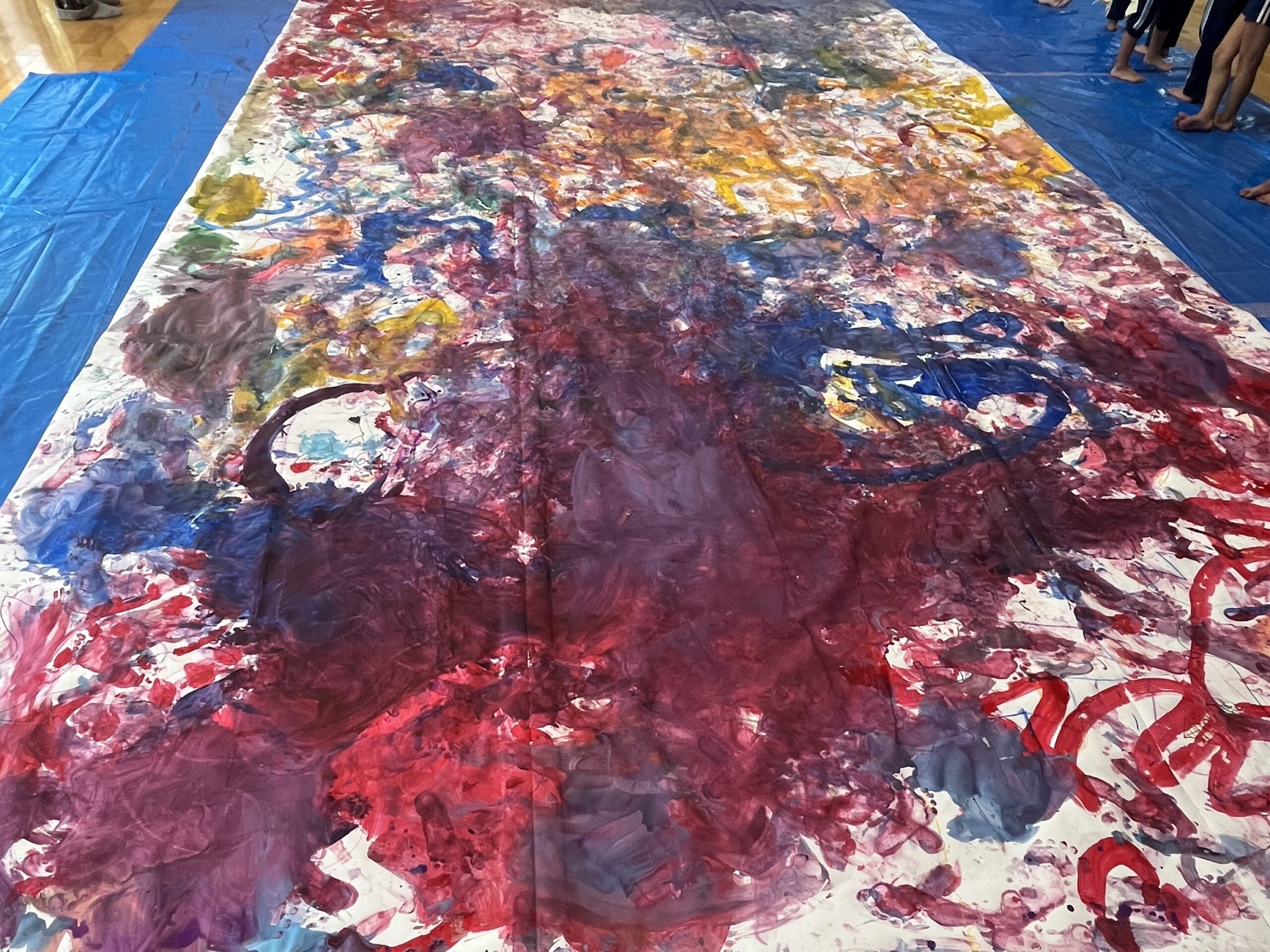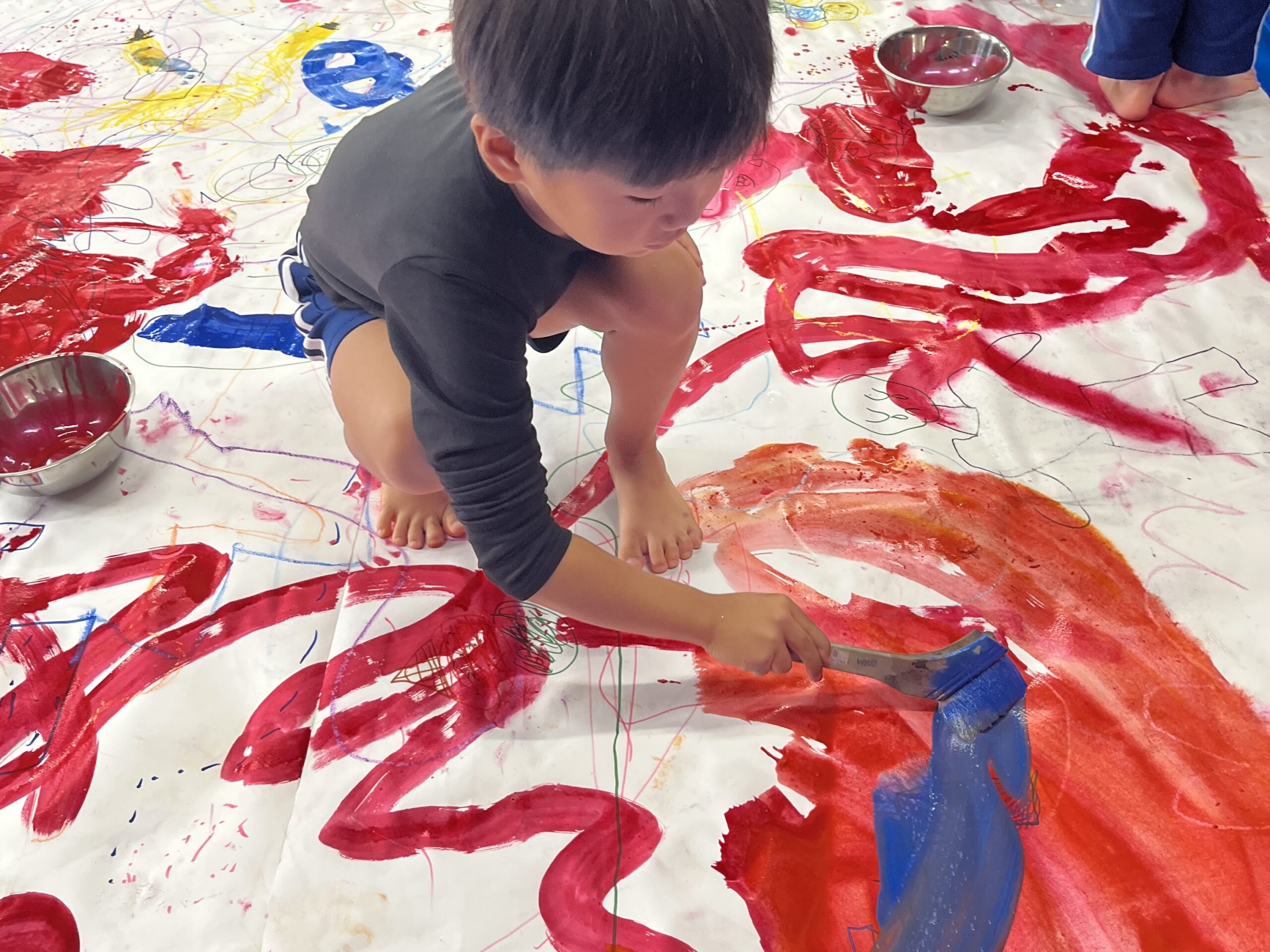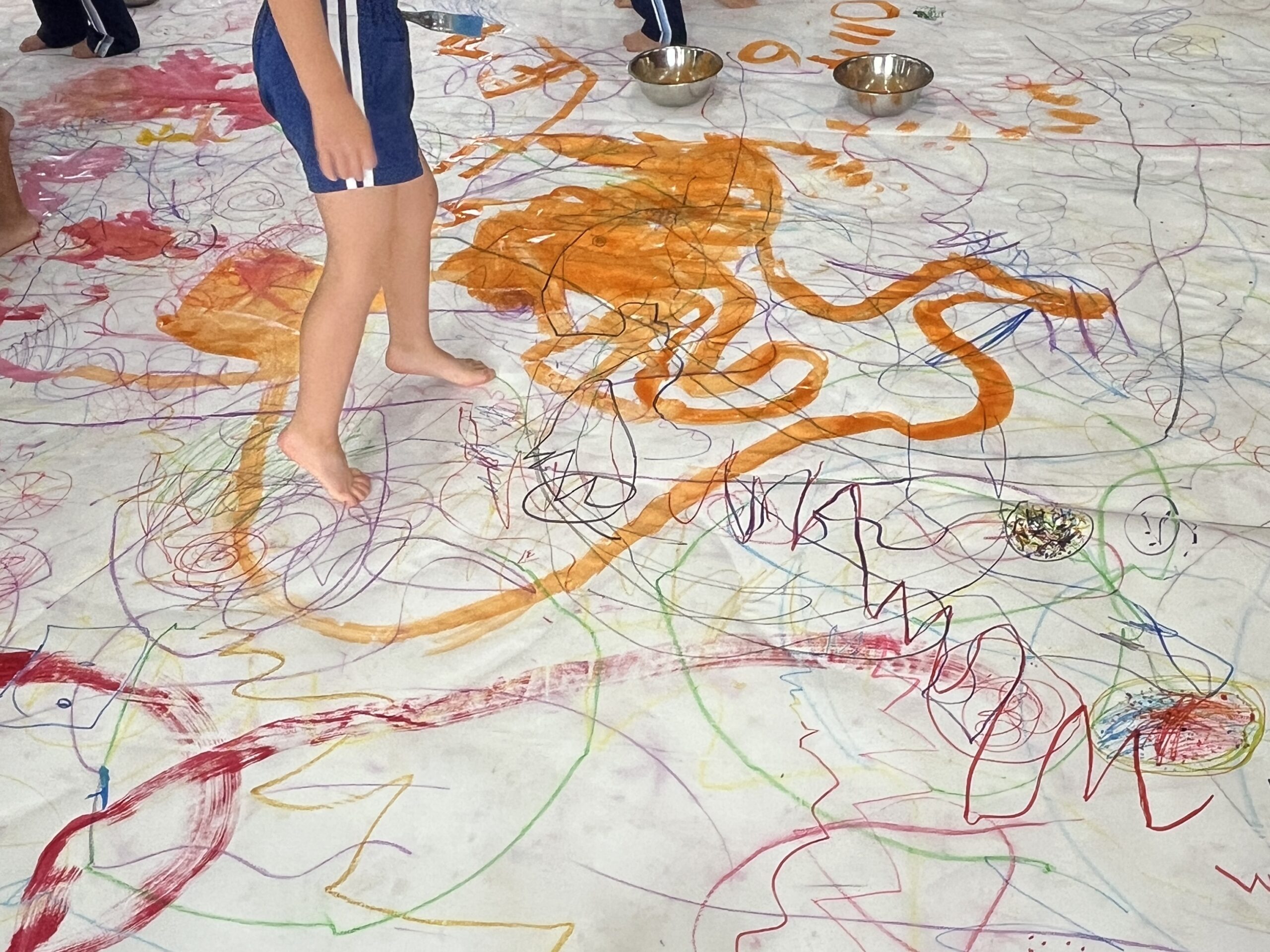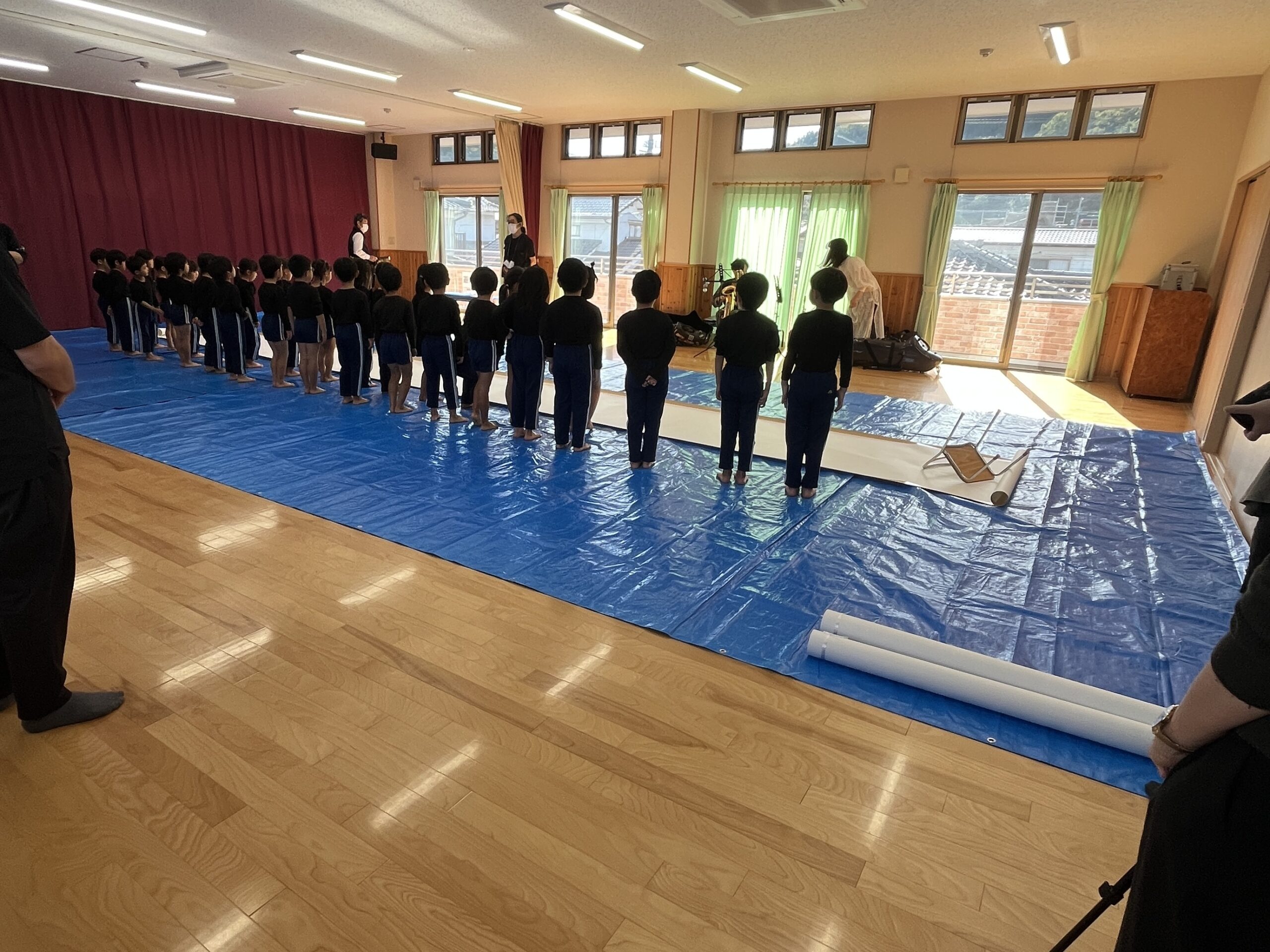 🎨スクールinミュージアム🎨 / ブログ / By miyakawauchi 11月17日(月) スクールinミュージアムで 大分県立美術館(OPAM)の方々に 来園していただきました🎨 くじらホールに広げた 10メートルのキャンバスに😳 楽器の演奏を聴きながら🎶🎷 みんなでクレパスやマーカー、絵の具を使って ひとつの作品を作りました🖼️ 作品が展示される 1月を楽しみにしています🎨 OPAMの えのさん ふっちーさん かなみんさん ともちゃんさん ミュージシャンの りょうこさん、ひろしさん 楽しい体験をありがとうございました😁