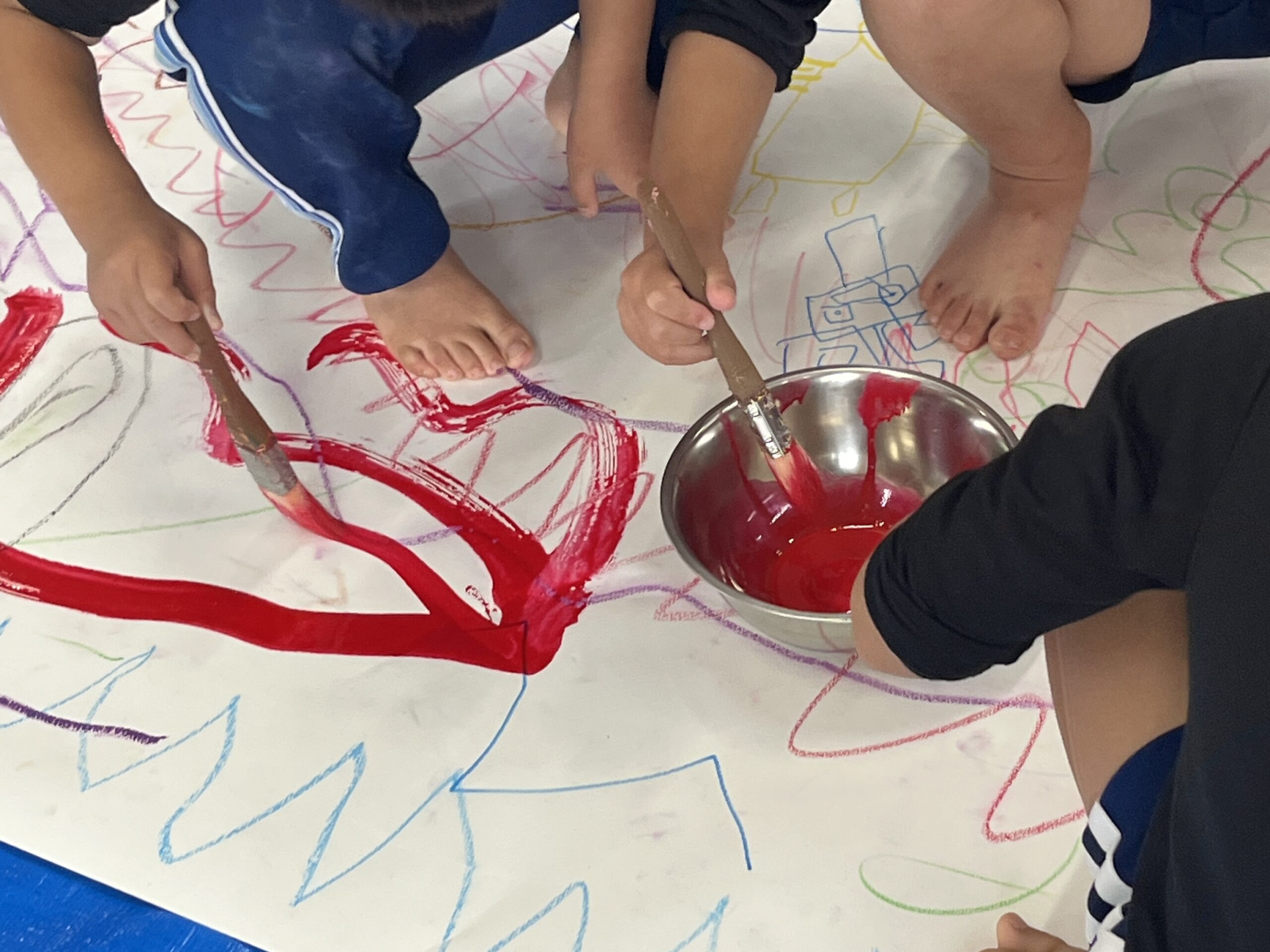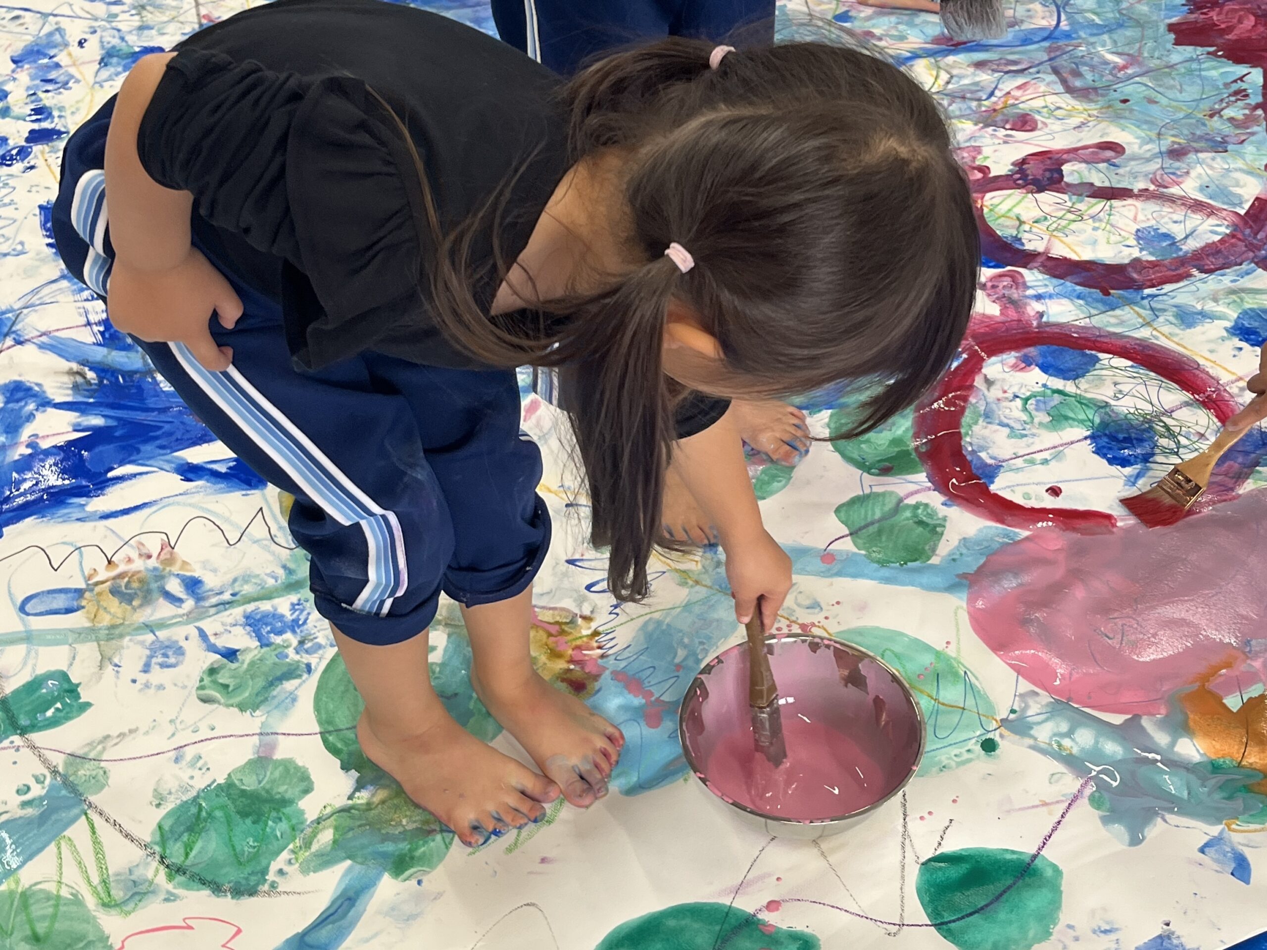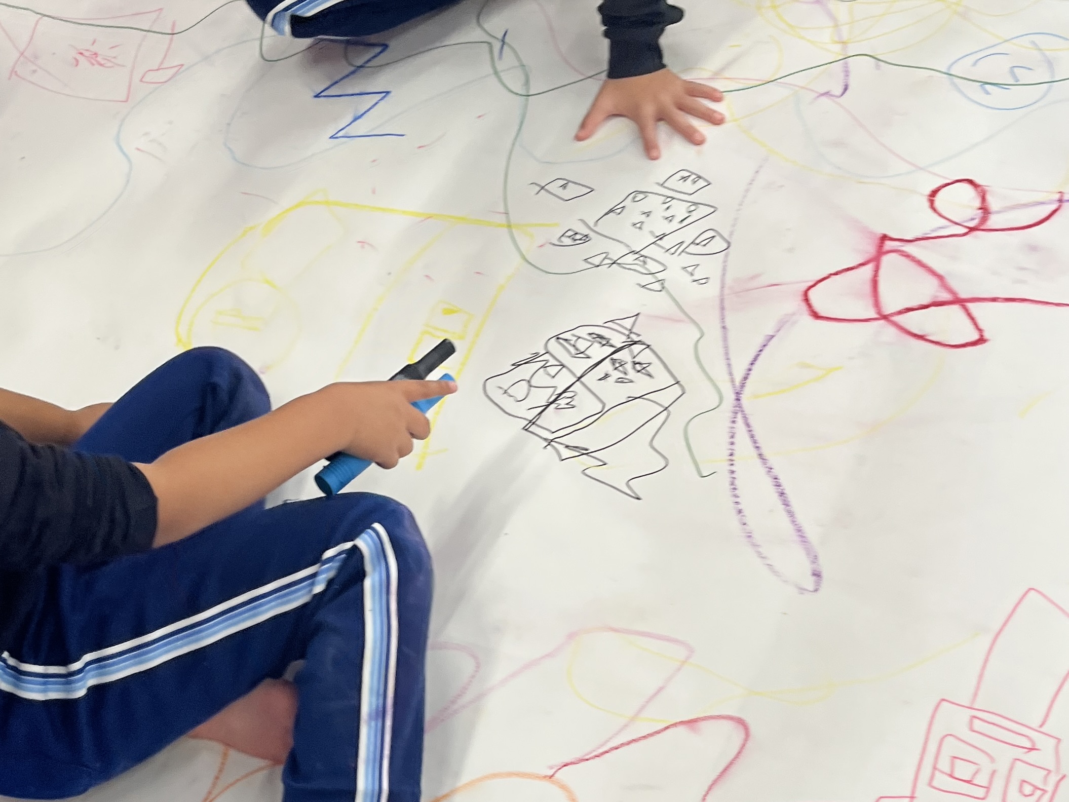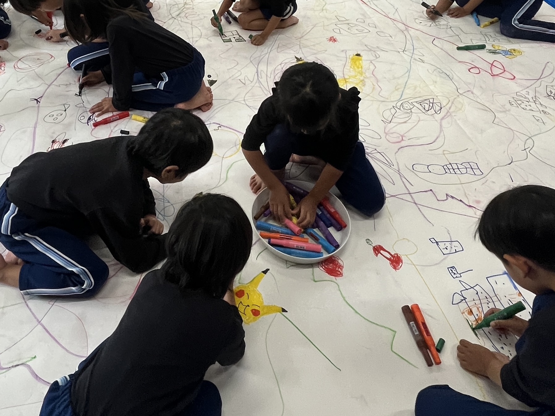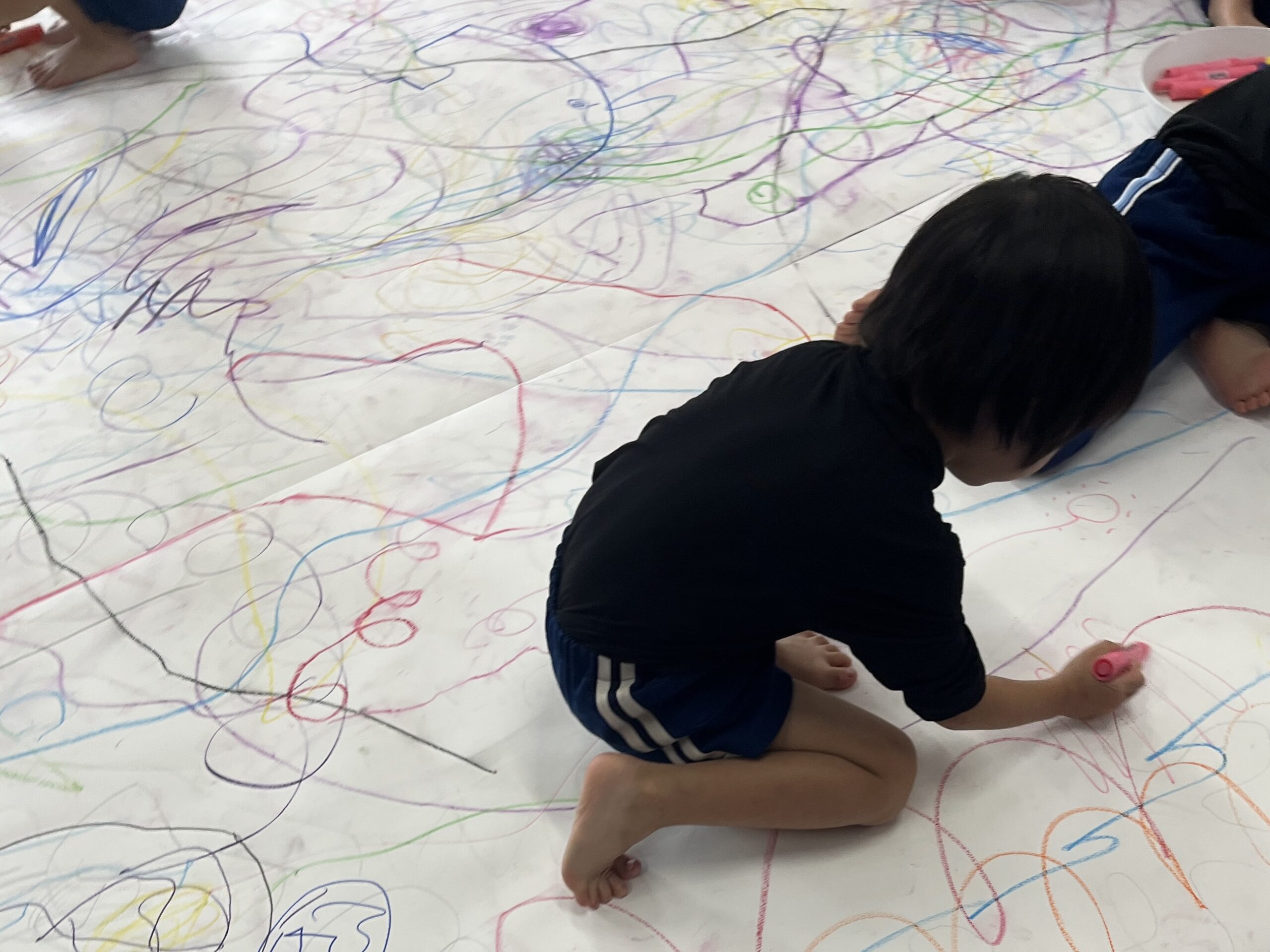 🎨スクールinミュージアム🎨 / ブログ / By miyakawauchi 11月17日(月) スクールinミュージアムで 大分県立美術館(OPAM)の方々に 来園していただきました🎨 くじらホールに広げた 10メートルのキャンバスに😳 楽器の演奏を聴きながら🎶🎷 みんなでクレパスやマーカー、絵の具を使って ひとつの作品を作りました🖼️ 作品が展示される 1月を楽しみにしています🎨 OPAMの えのさん ふっちーさん かなみんさん ともちゃんさん ミュージシャンの りょうこさん、ひろしさん 楽しい体験をありがとうございました😁