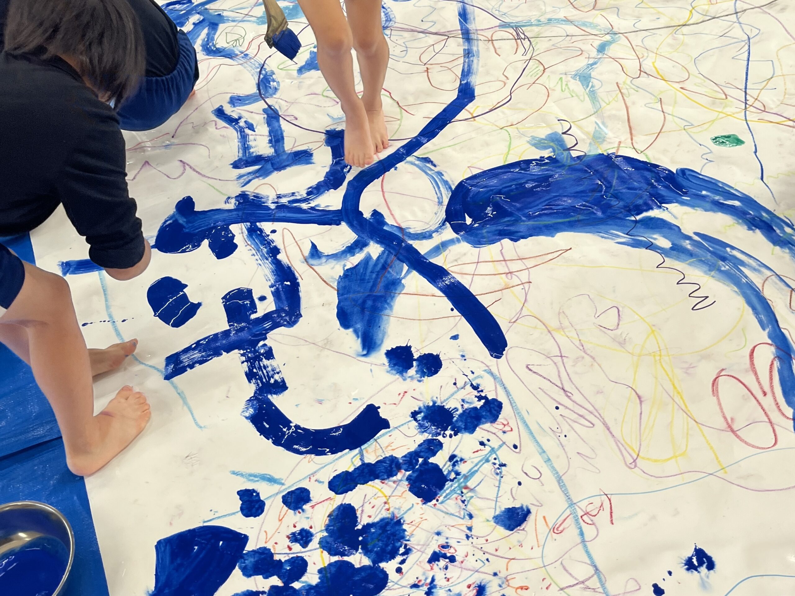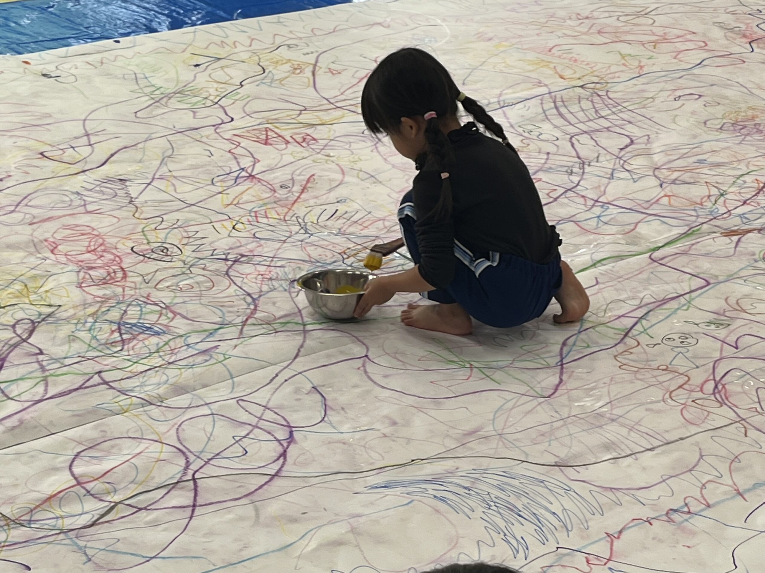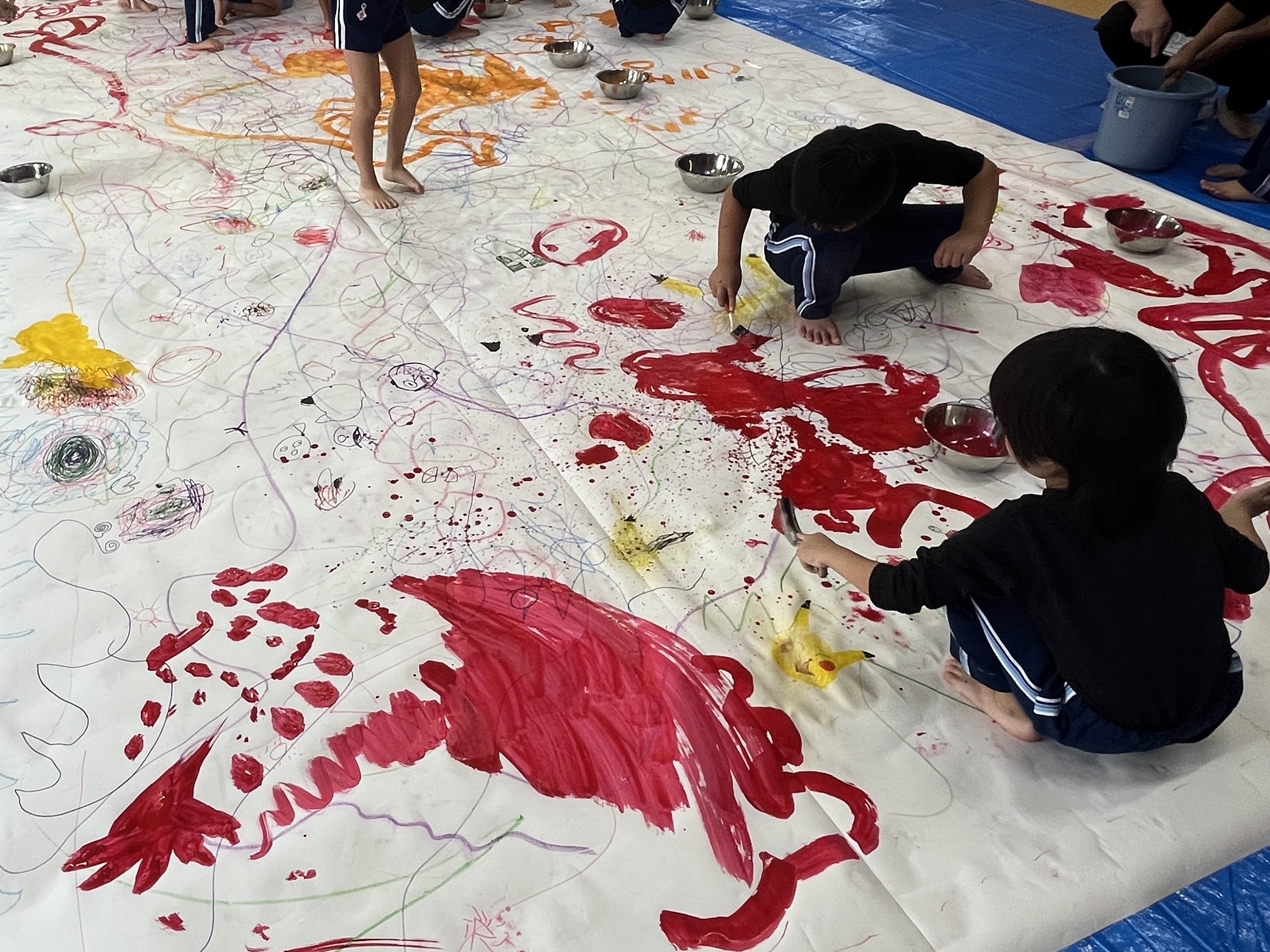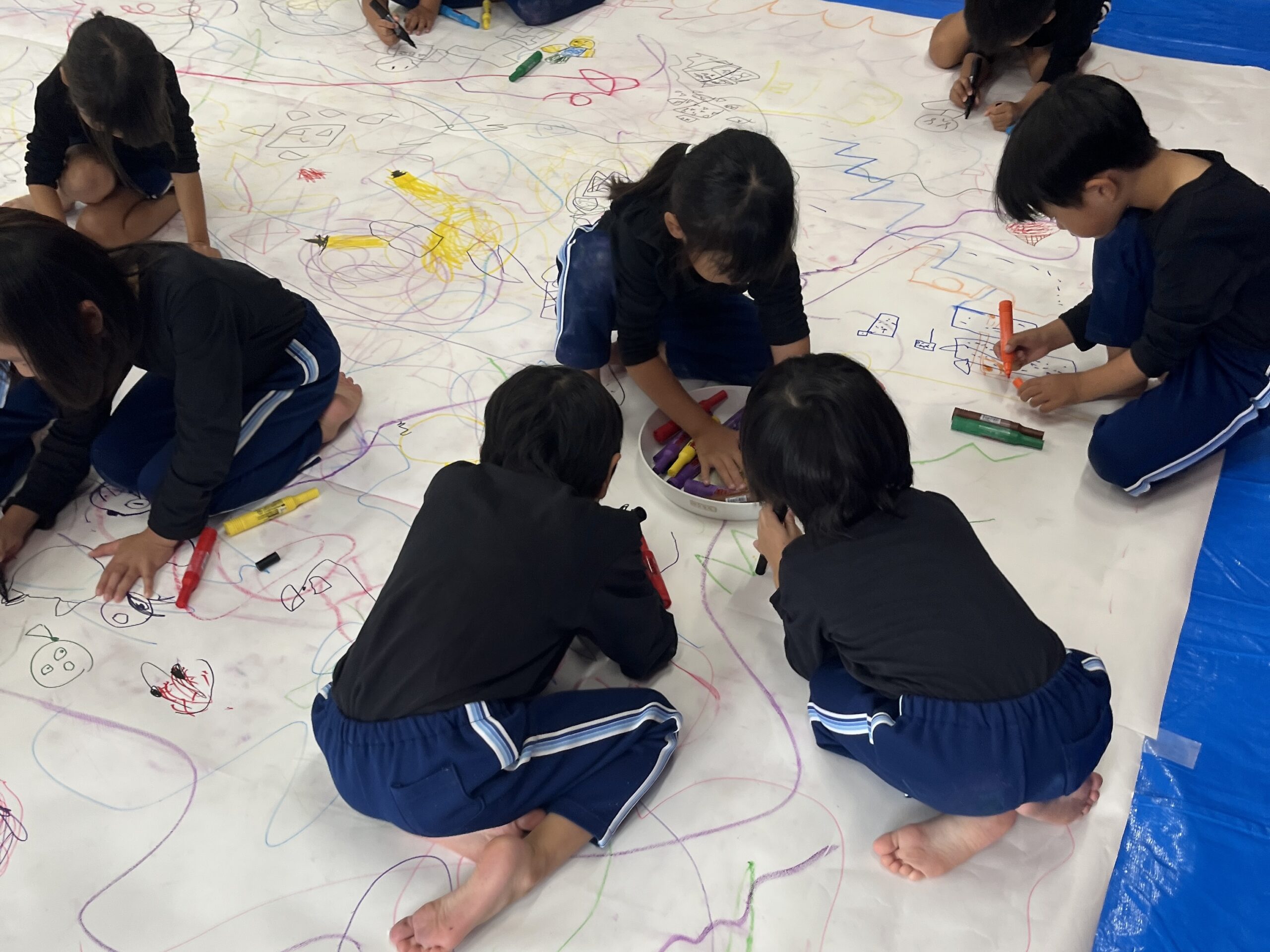 みんなでクレパスやマーカー、絵の具を使って