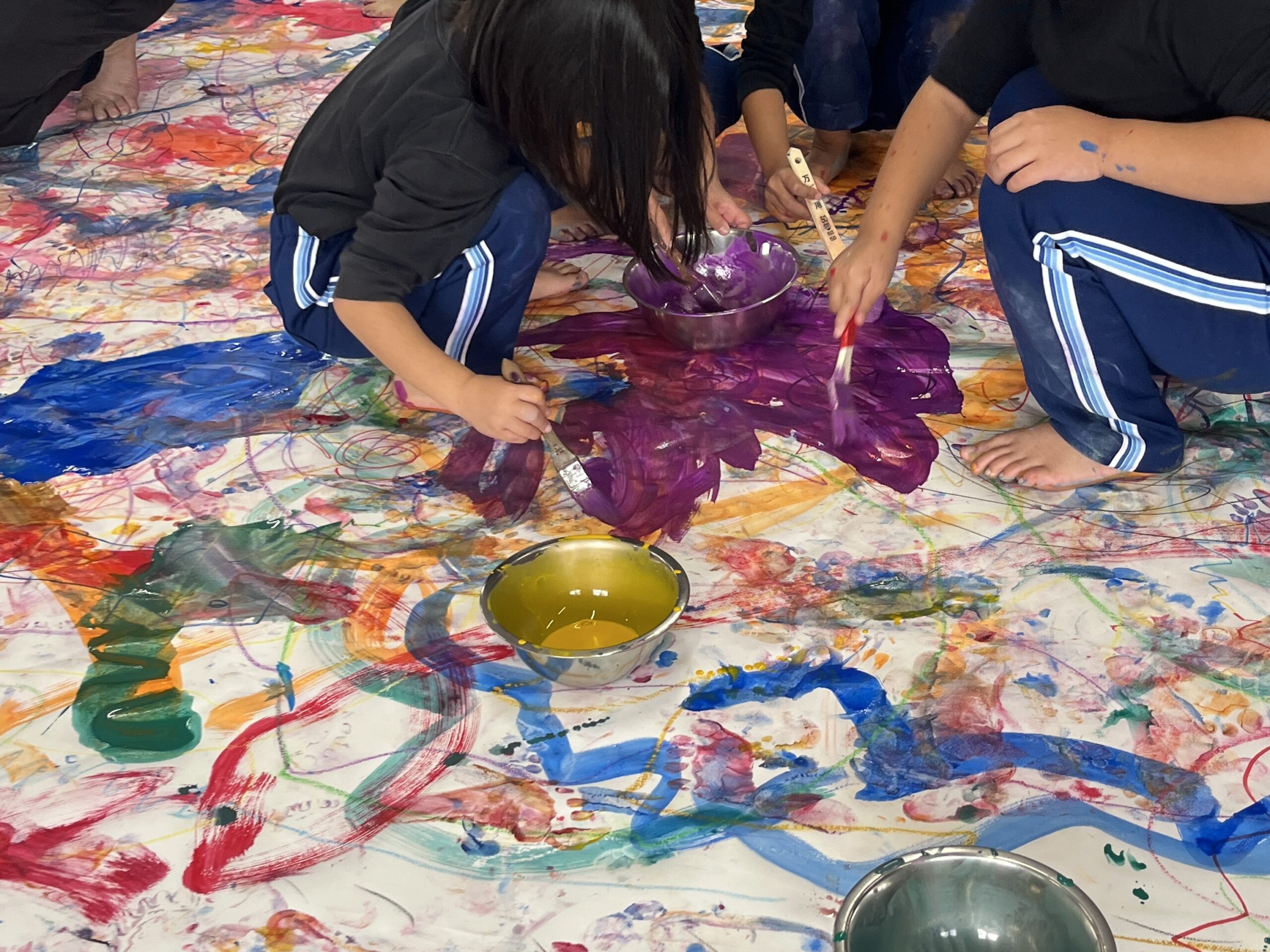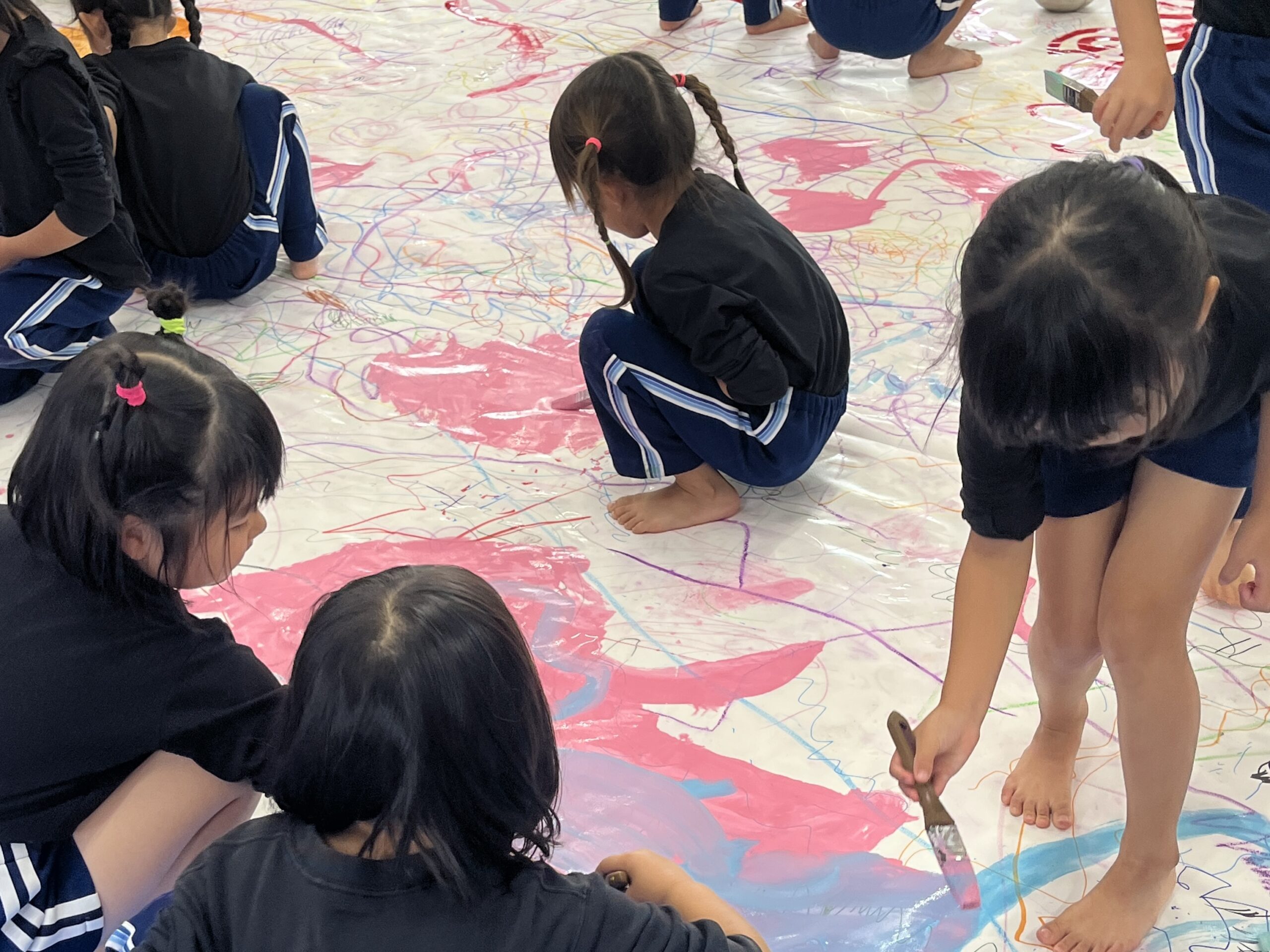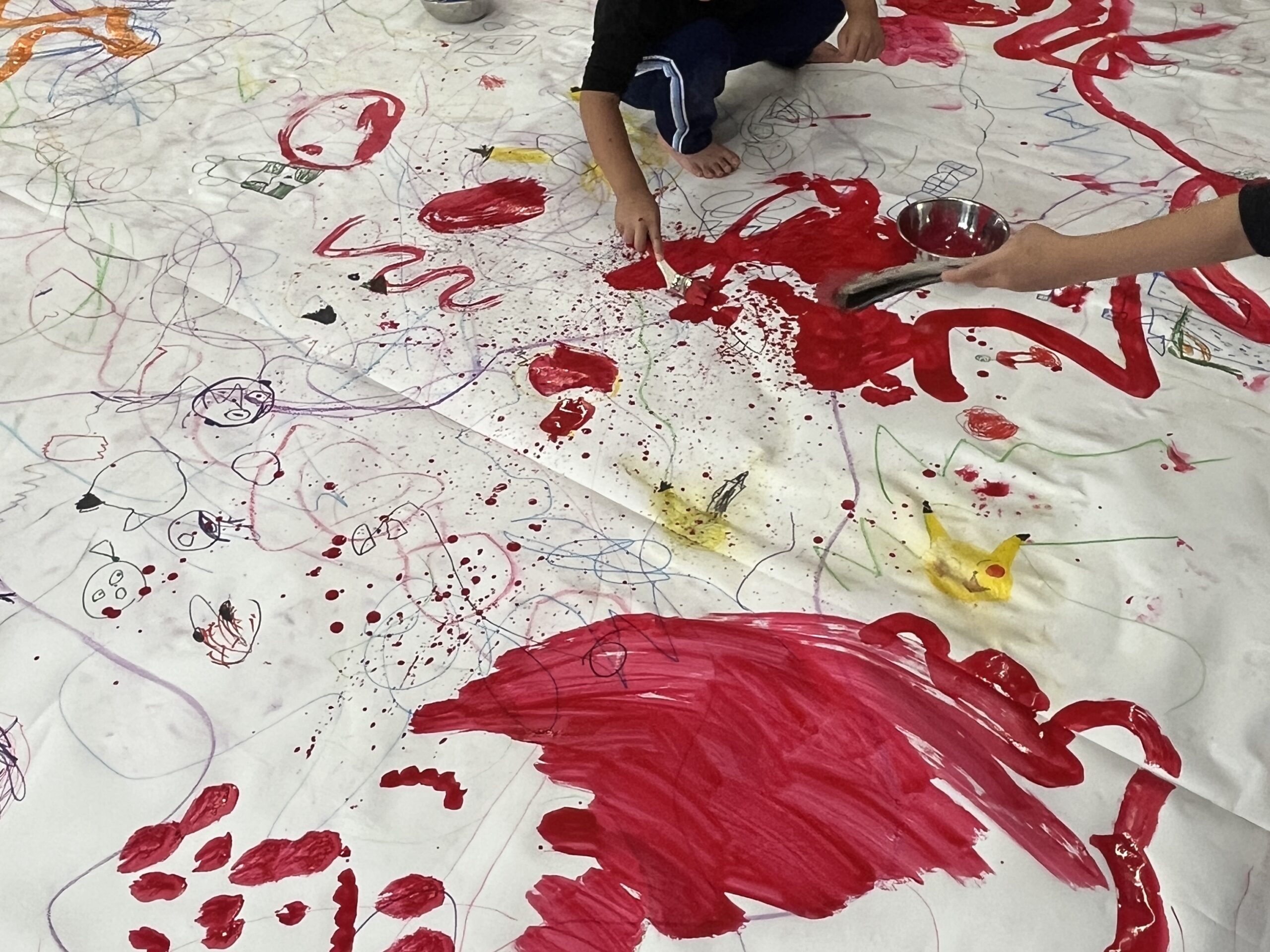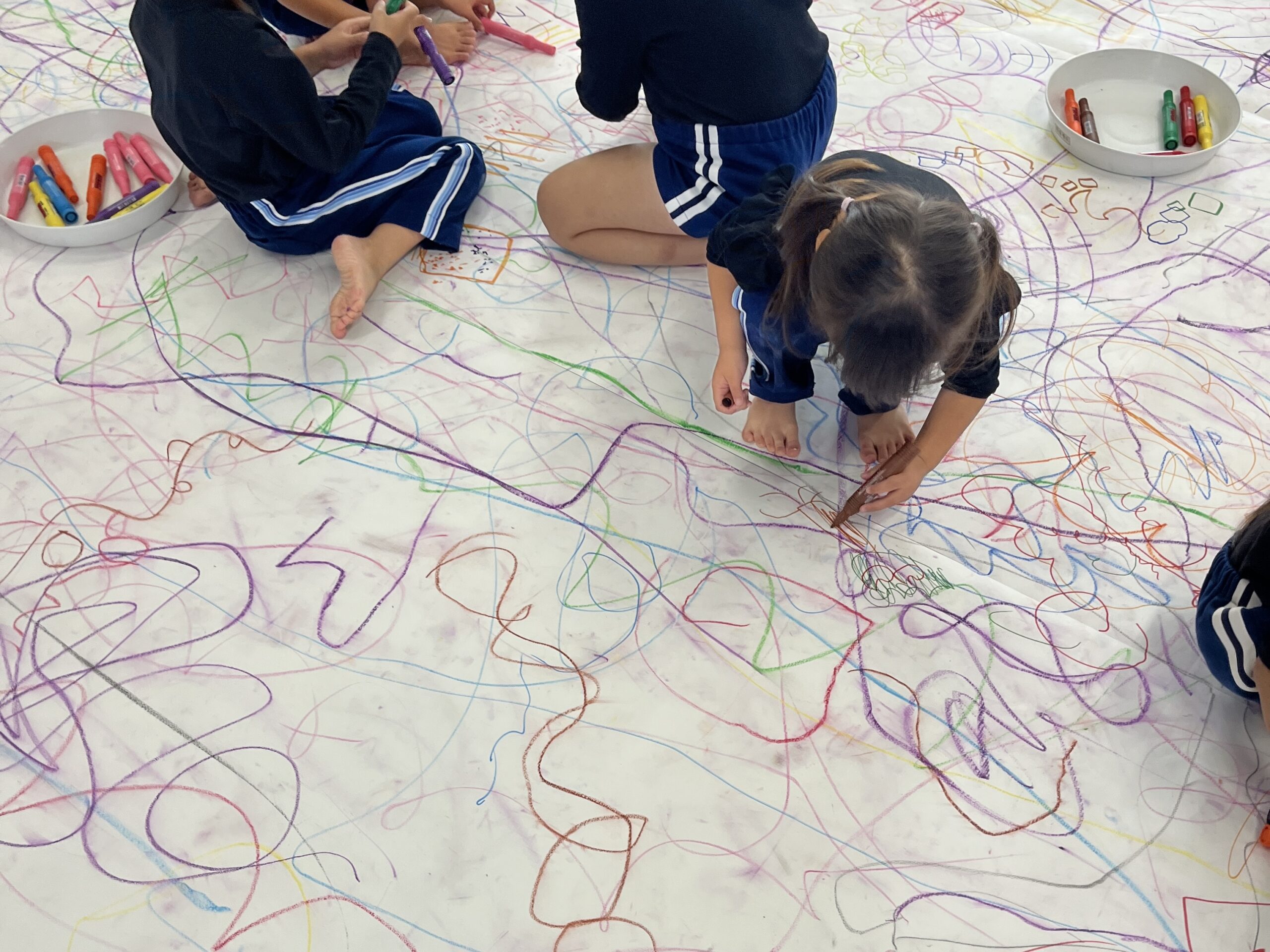 みんなでクレパスやマーカー、絵の具を使って