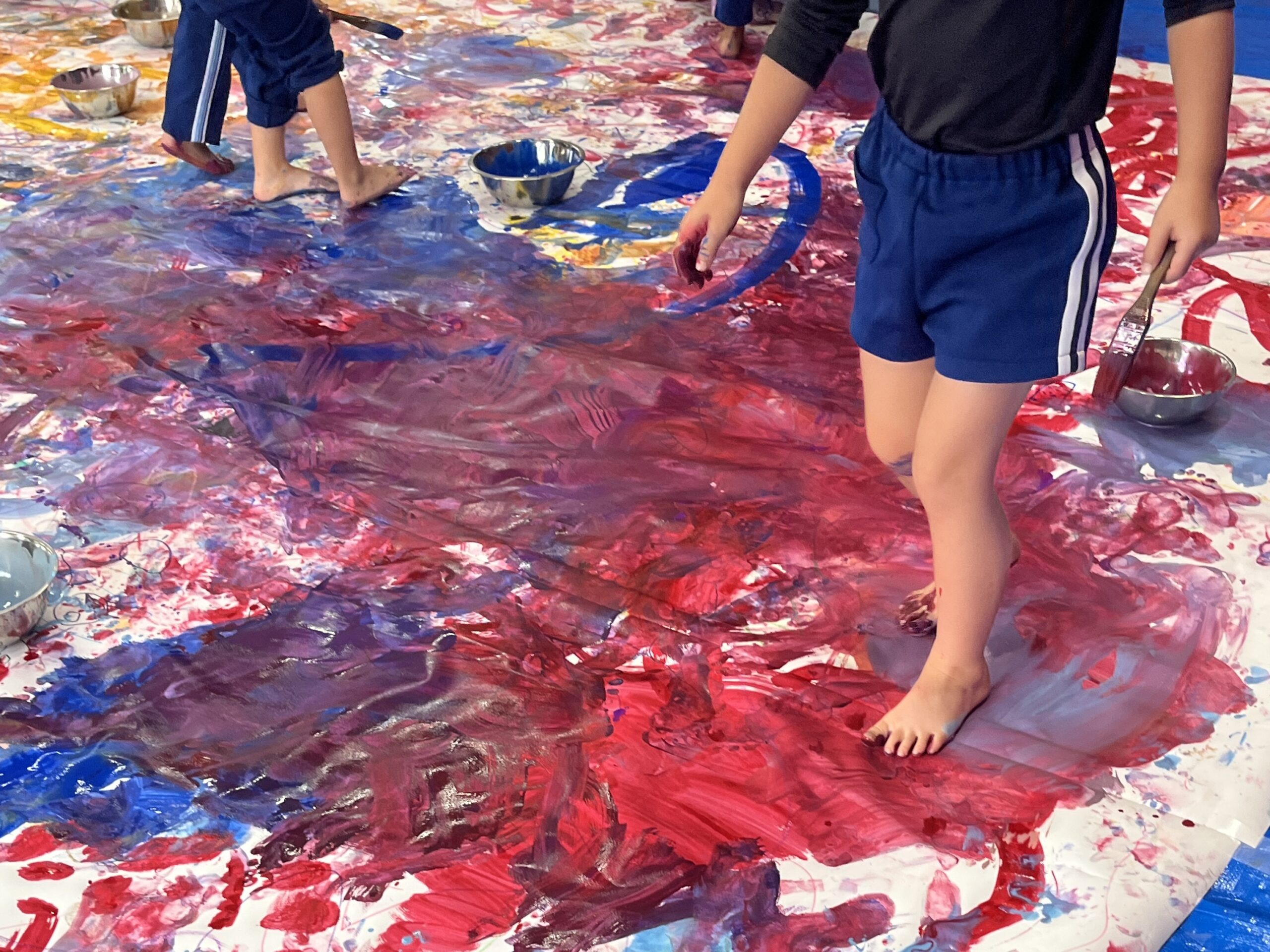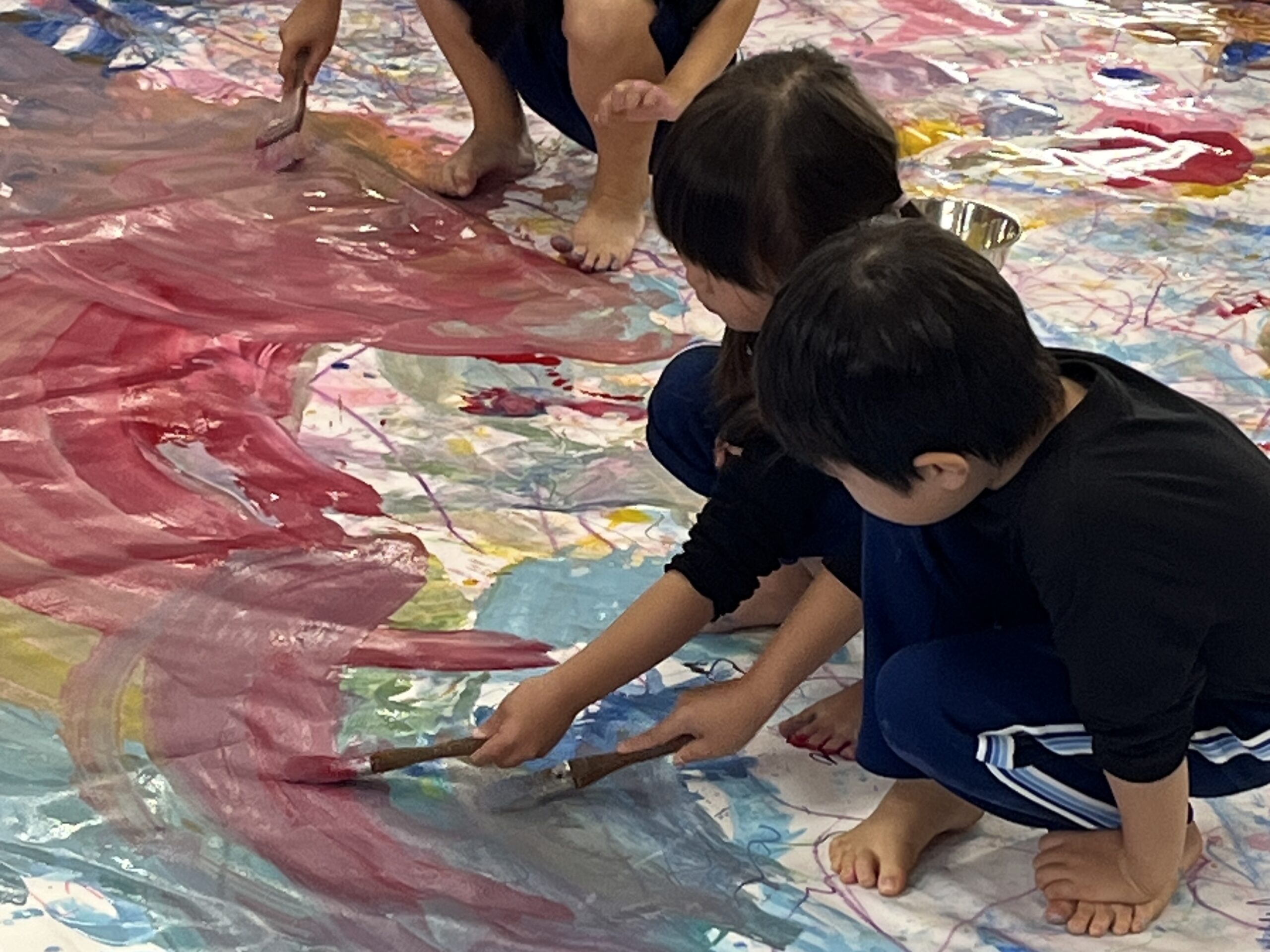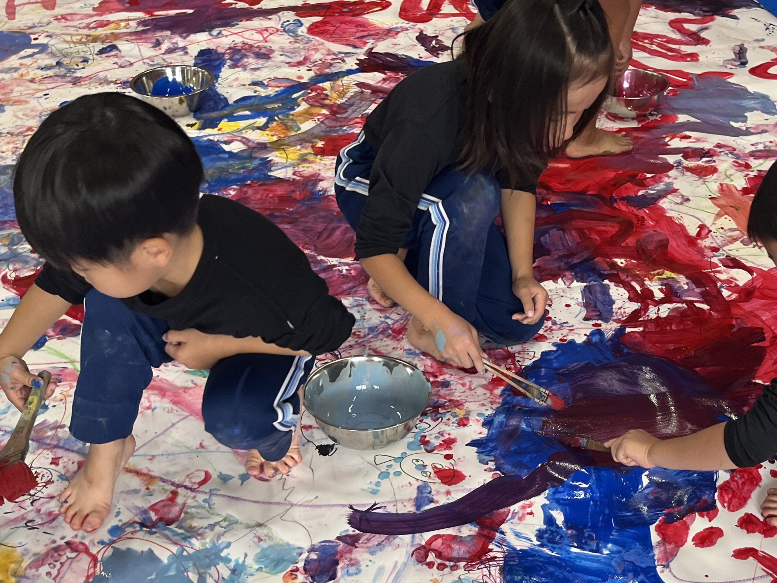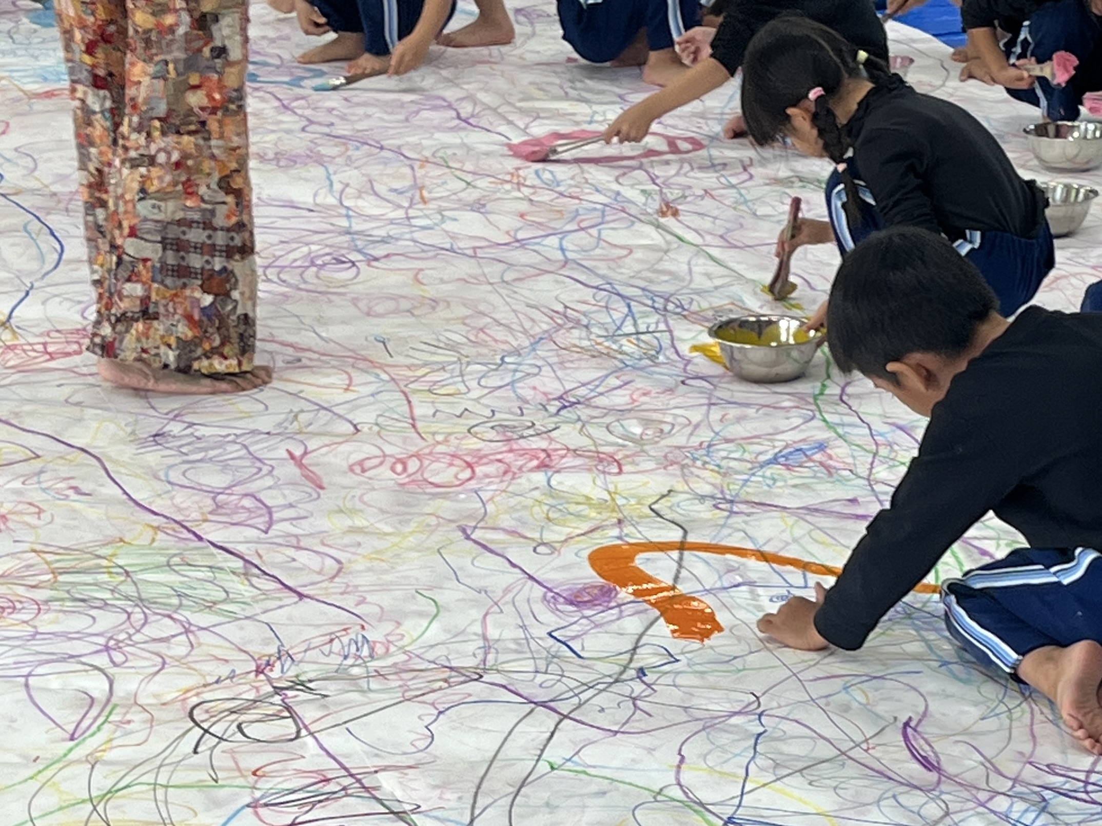 みんなでクレパスやマーカー、絵の具を使って
