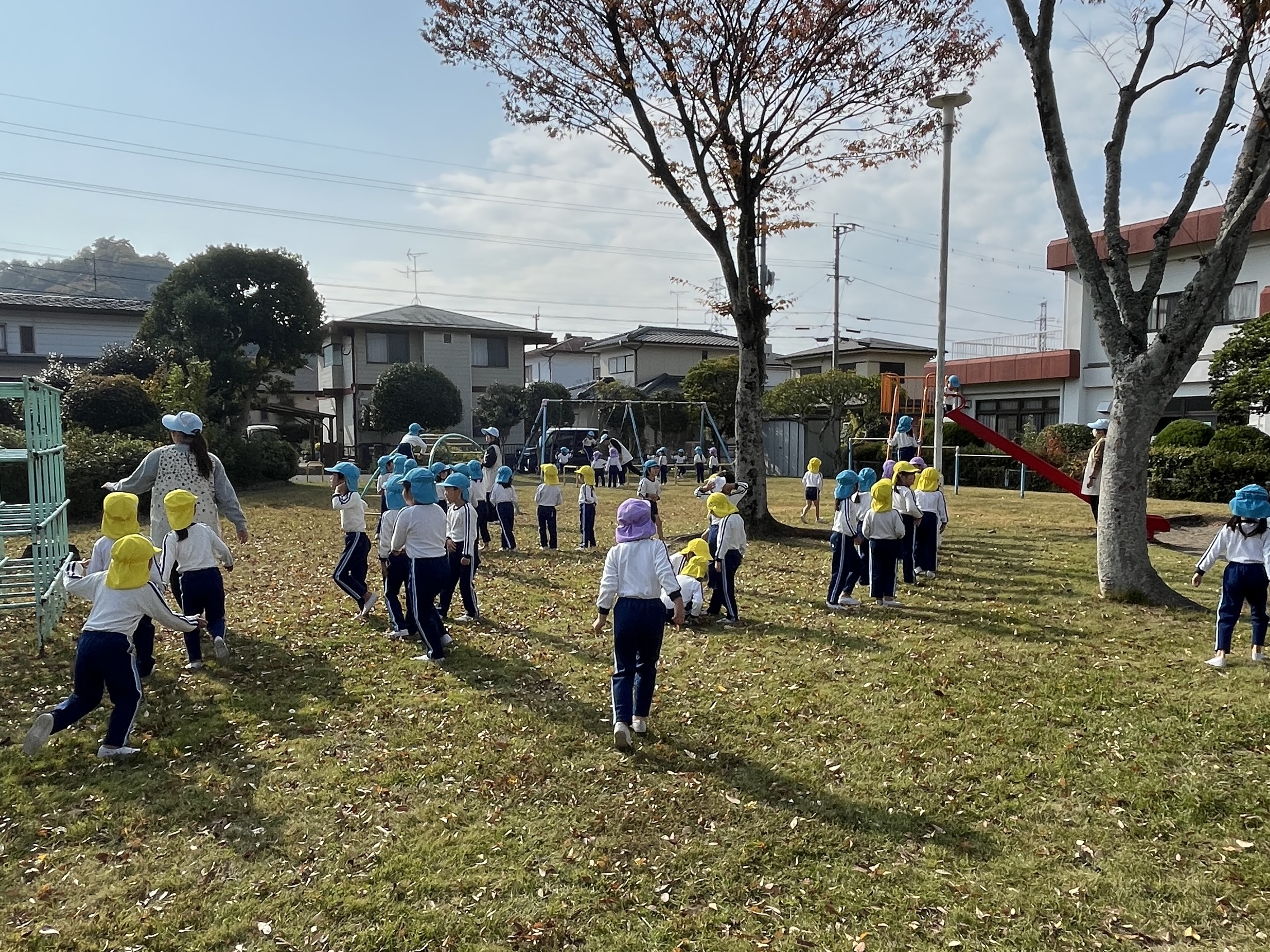 🍂遠足で秋みつけ🍂 / ブログ / By miyakawauchi 11月26日(水) 宮河内幼稚園のある宮河内ハイランドには 5つの公園があります🛝 その中から 今日は遠足で2つの公園に行きました☀️ 中央公園ではみんなで遊具遊び🛝 北公園では秋みつけをして🍂🍁 どんぐり拾いをしました🌰 行き帰りに 細い道や階段、横断歩道等がありましたが 先生の言うことをしっかりと聞いて ルールを守って安全に🔰 幼稚園に帰ってくることができました😁