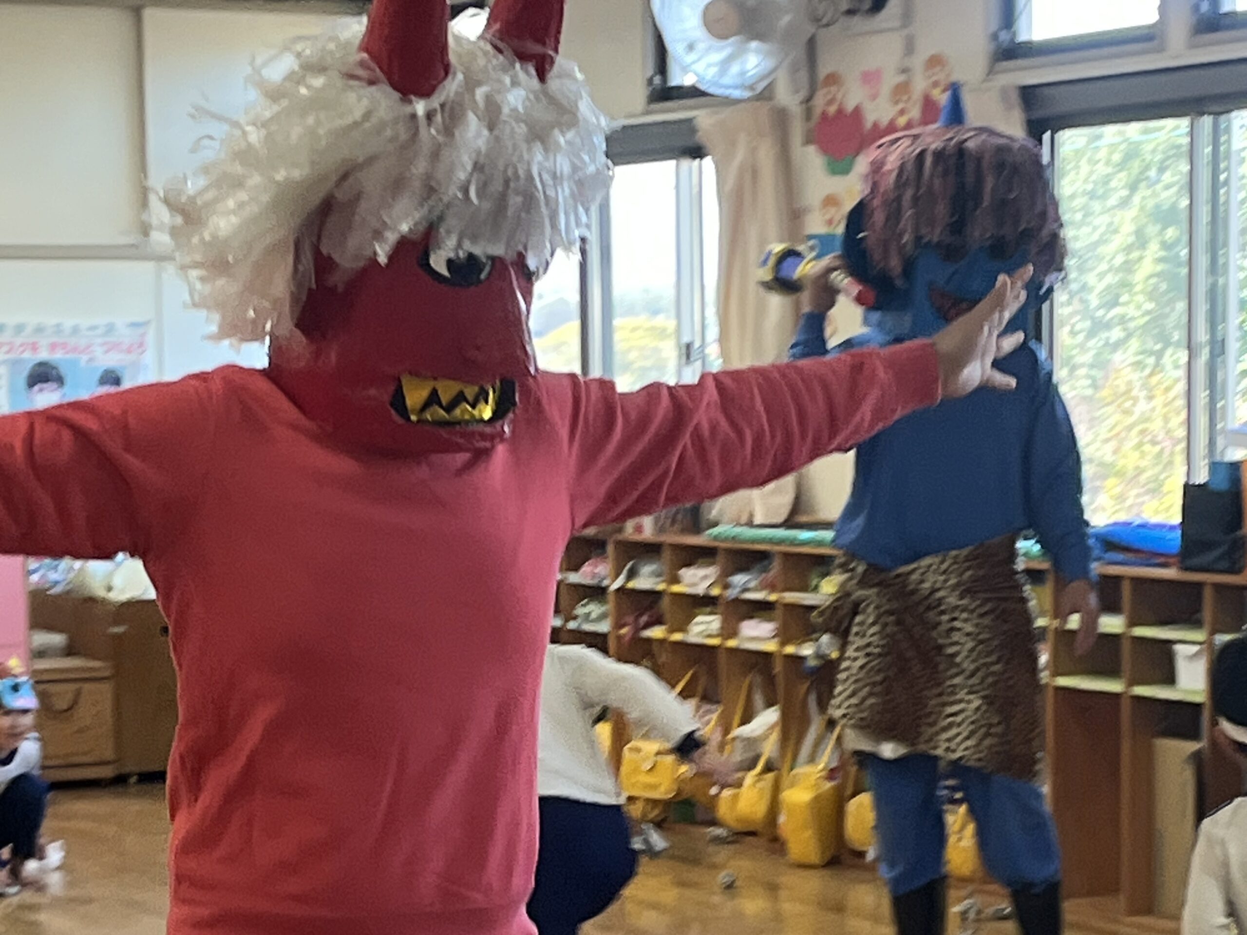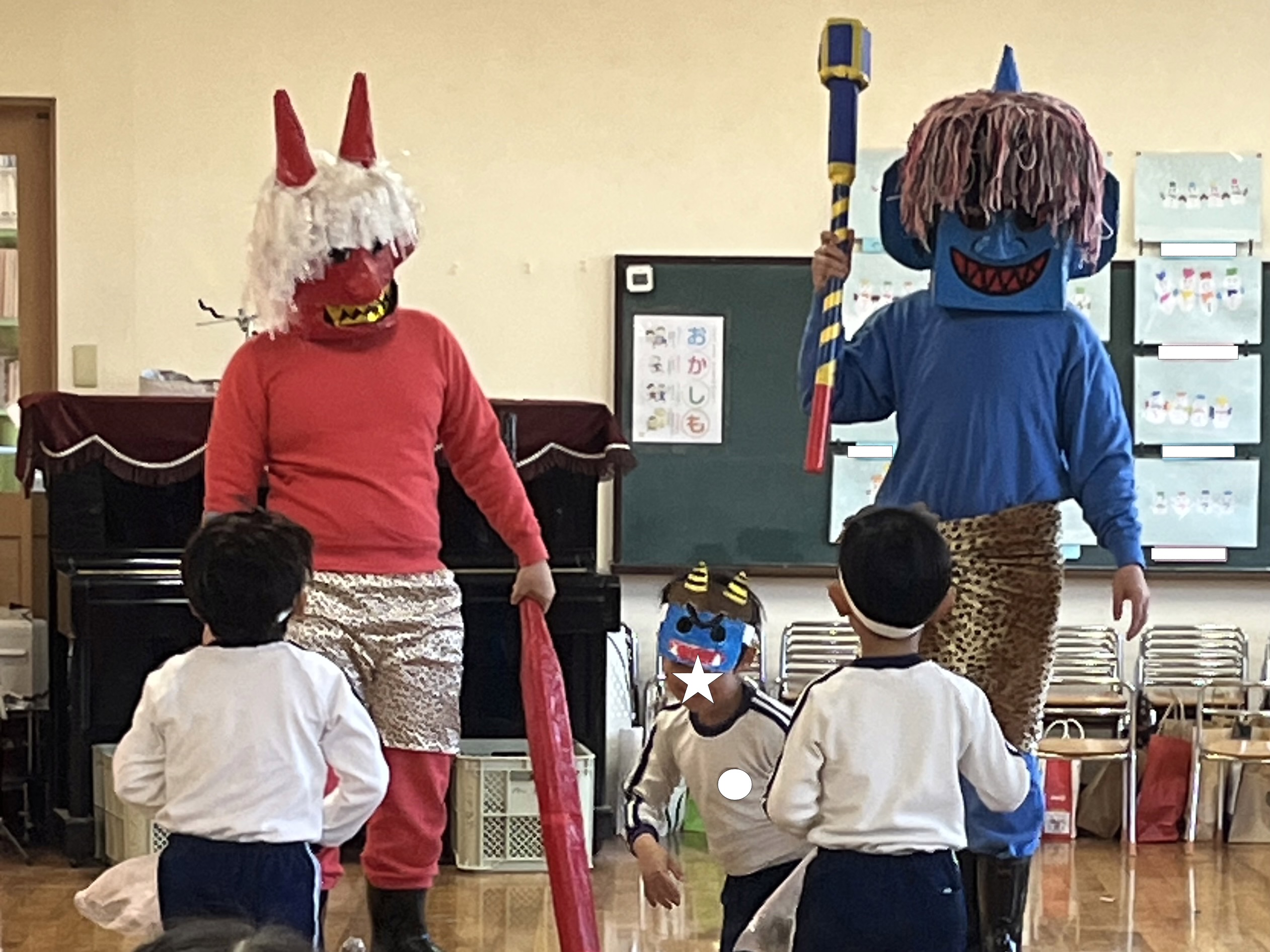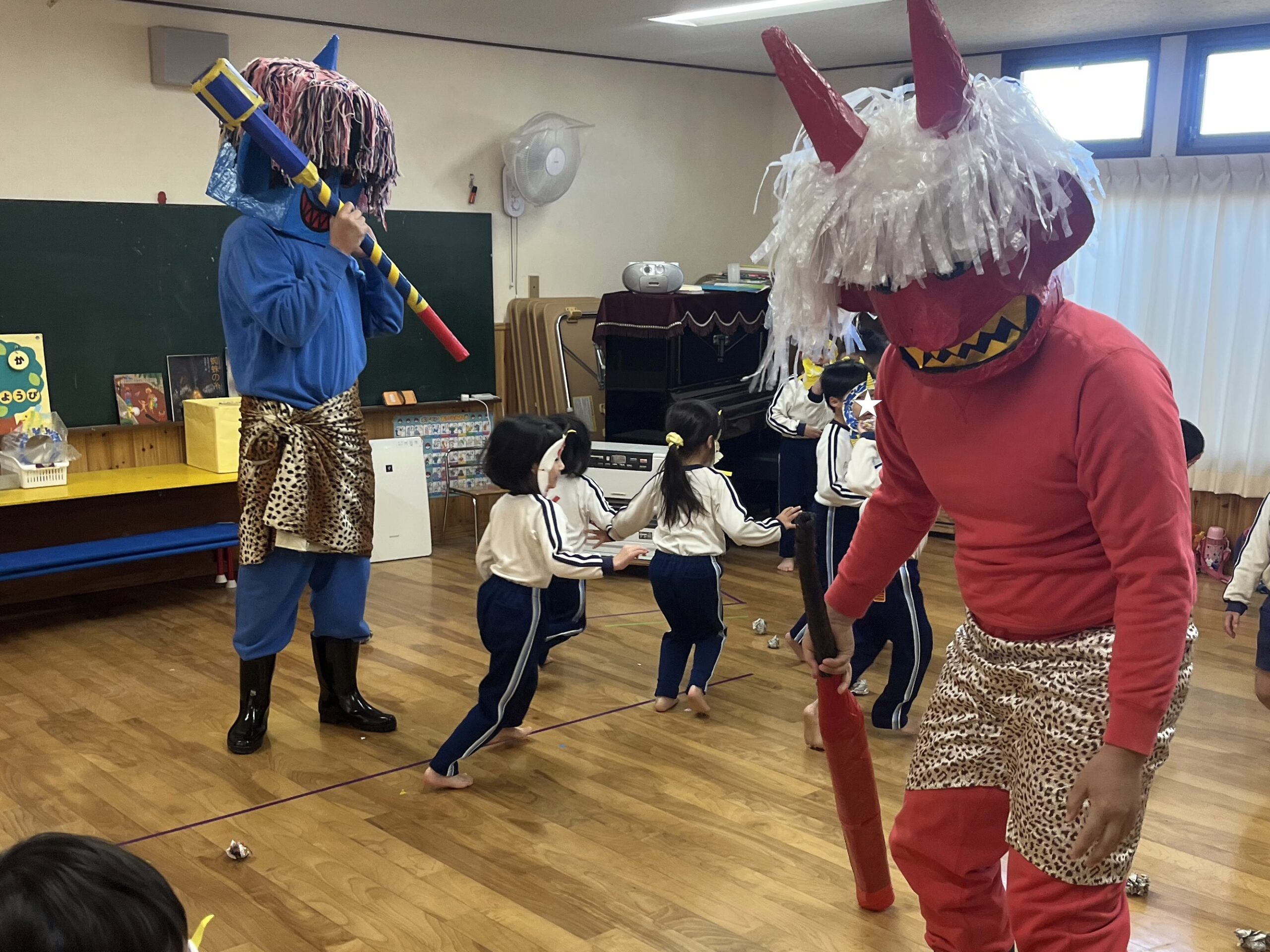 👹幼稚園に鬼がやってきた👹 2026年2月3日 コメントはまだありません 2月3日(火) 毎年恒例の 節分豆まき大会を行いました! 赤鬼さん、青鬼さんがクラスにやってくると 「いやだー!」 「こっちに来ないでー!」 泣き叫ぶ子、逃げ回る子が たくさんいましたが。。。 「鬼は外ーー!福は内ーー!!」 と元気に豆(紙の玉)を投げて🫘🫘 鬼さんたちを外に出すことができました👹 鬼さん、ありがとうございました😁