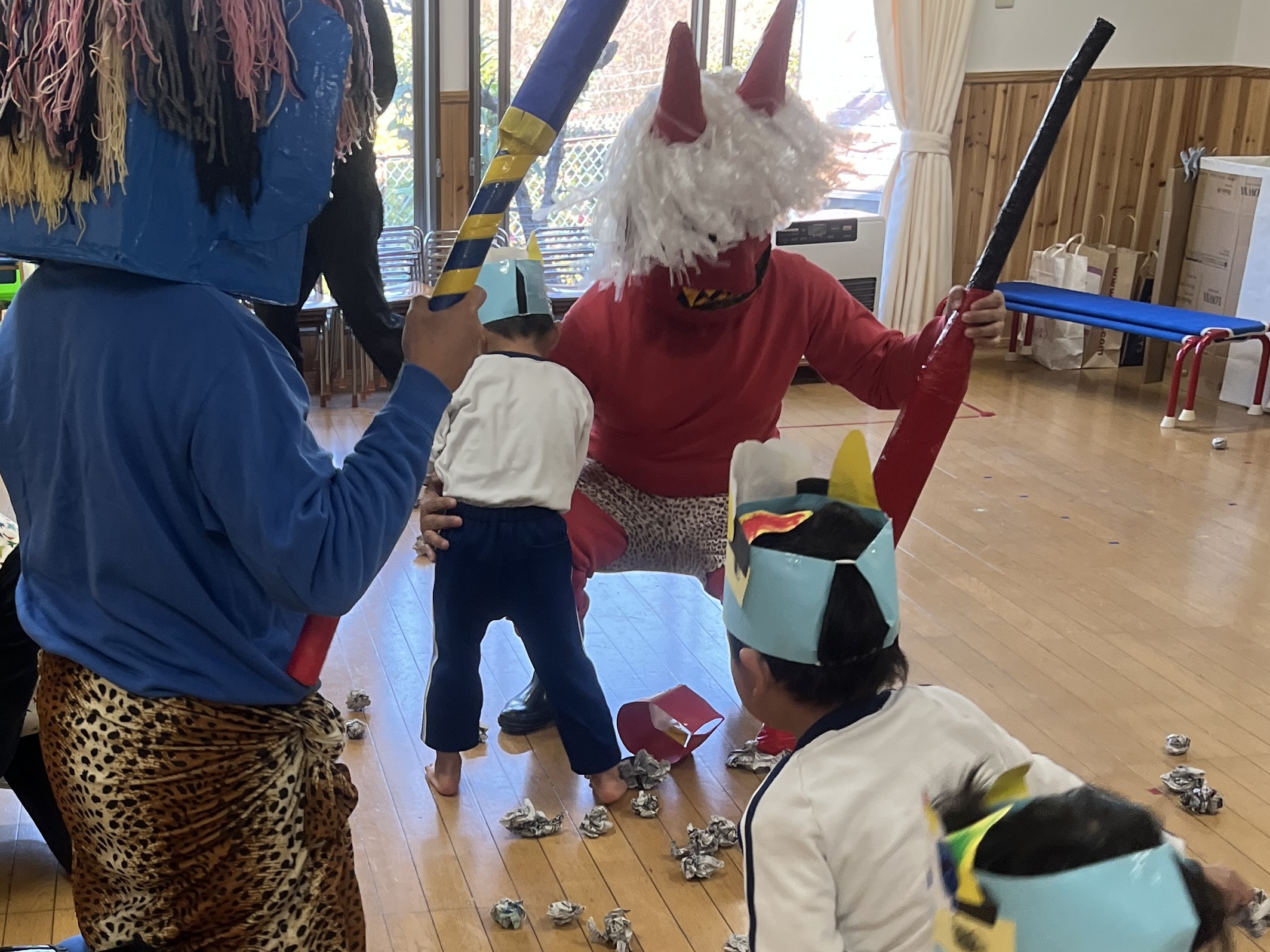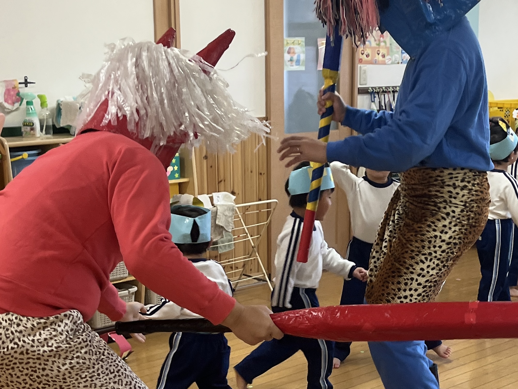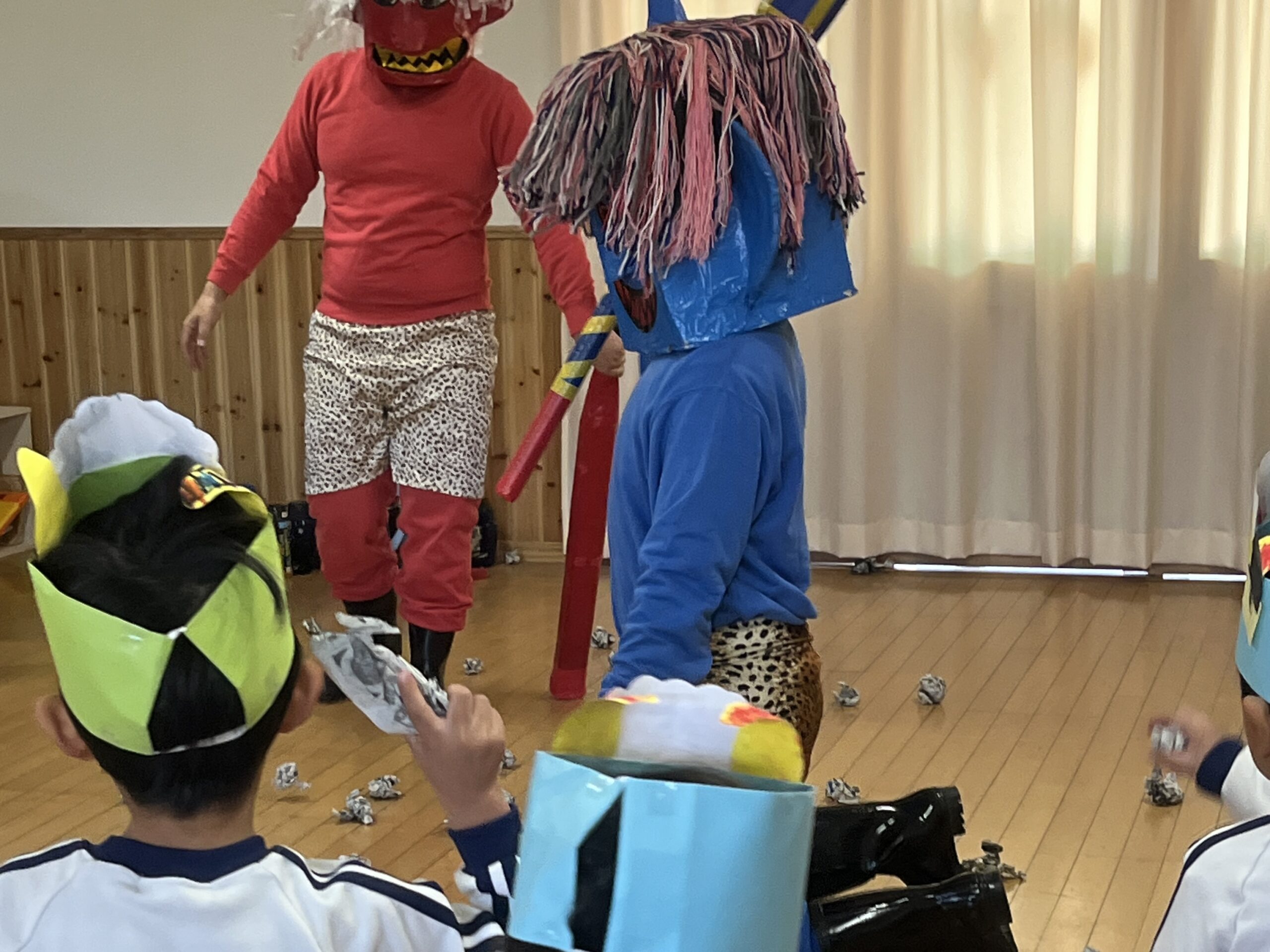 👹幼稚園に鬼がやってきた👹 2026年2月3日 コメントはまだありません 2月3日(火) 毎年恒例の 節分豆まき大会を行いました! 赤鬼さん、青鬼さんがクラスにやってくると 「いやだー!」 「こっちに来ないでー!」 泣き叫ぶ子、逃げ回る子が たくさんいましたが。。。 「鬼は外ーー!福は内ーー!!」 と元気に豆(紙の玉)を投げて🫘🫘 鬼さんたちを外に出すことができました👹 鬼さん、ありがとうございました😁